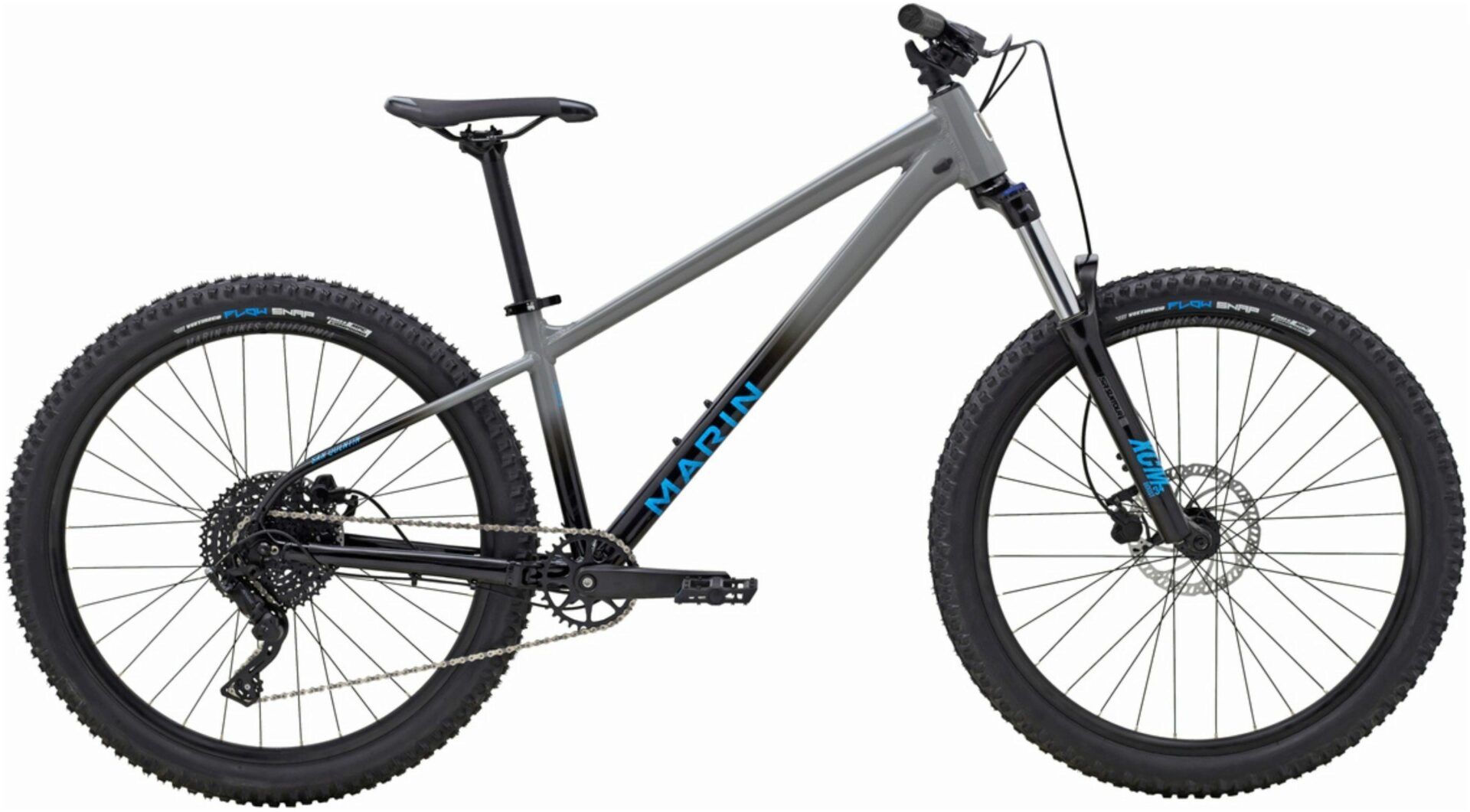 We've packed in an SR Suntour XCM34 suspension fork, Vee Tire Co tires, Tektro disc brakes and a load of awesome Marin components to create a bike you’ll love to rip, but that won’t shred your budget. And we've given it a bad-ass paint job that'll cut it alongside those big-bucks bikes.