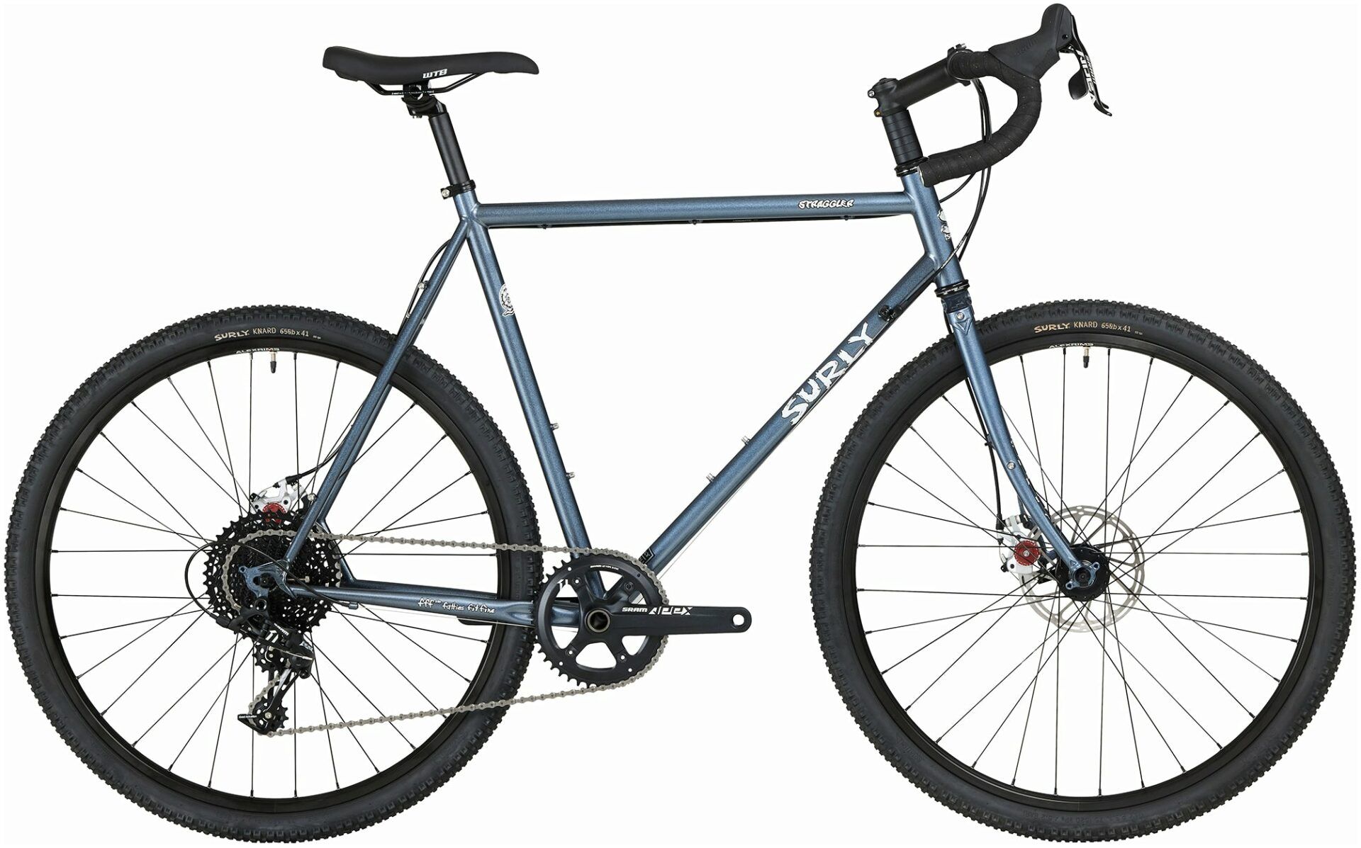 Straggler is tuned for cross-over exploration on a wide variety of terrain conditions. It's a day-tripper and a weekender. It's a 'rough road' road bike, a cyclocross bike with no pretence about racing, a utilitarian townie, a light-duty touring bike and an all-weather commuter. It's a steel gravel bicycle that thrives on the road. Think of it as a "mountain biker's road bike." If you only have room for one bike in your life, Straggler can (and should) be your one and only.