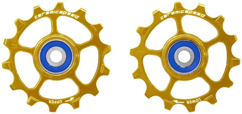 The CeramicSpeed Pulley Wheels for Shimano XT/XTR offers a unique symmetrical 14-tooth narrow-wide design that provides exceptional shift performance. The narrow-wide design delivers precise engagement of the chain, both on and off the pulley wheels. The increased pulley size, compared to stock, reduces chain friction. The pulleys have a lightweight machined alloy body for durability and long life, and are developed, designed and handbuilt in Denmark.