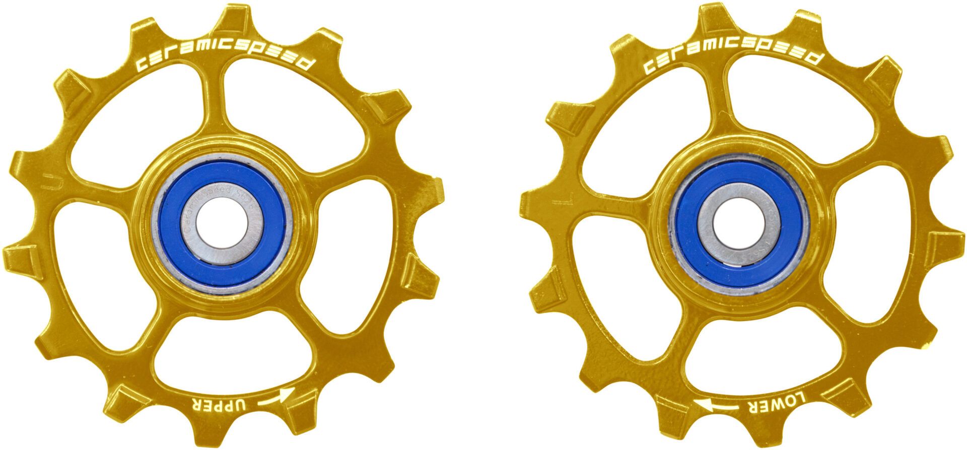 When you go with these, you need to choose between two options. Machined aluminum pulleys with our CeramicSpeed Balls in stainless steel-races. These win efficiency tests everywhere, dominating the manufacturer’s pulleys. The second has aluminum pulleys with our CeramicSpeed Balls in coated hardened-steel races.