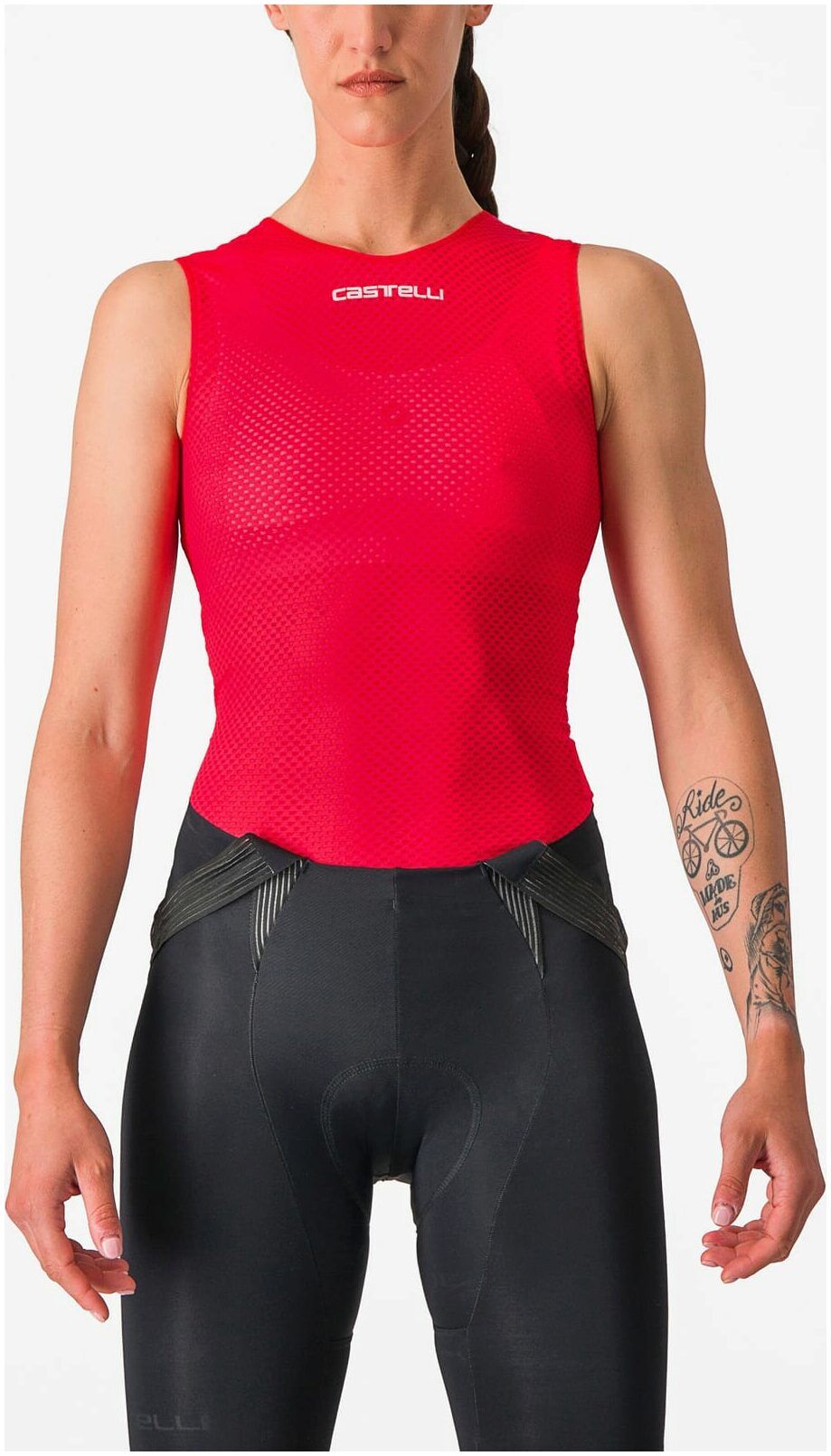 The Castelli Pro Mesh Women's Sleeveless is the sleeveless version of Castelli's Tour de France winning base layer, made to go under a sleeveless jersey when the temperatures are at the high end of the scale, or fit easily under a winter base layer when they're not.