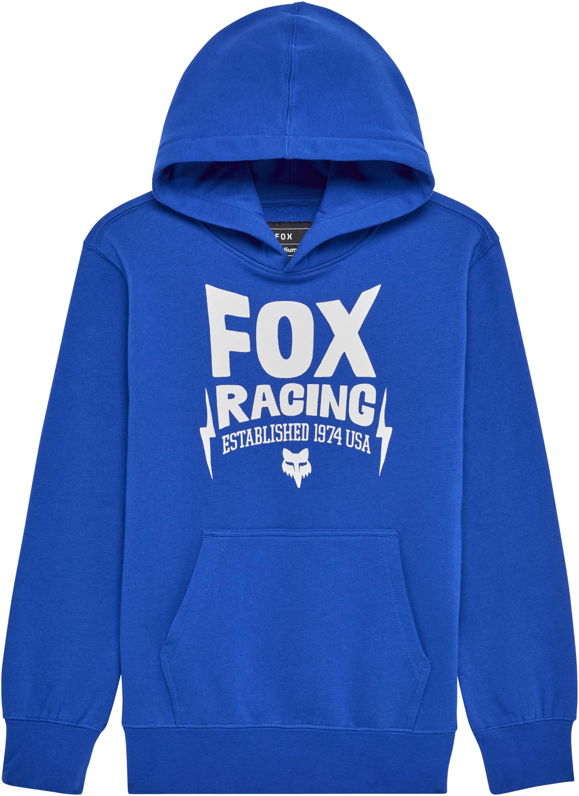 Like a bolt from the blue, this classic Fox Racing hoodie is destined to strike your heart and instantly become a fave. Those looking for a midweight hoodie for those late afternoon temperature drops or early morning starts need to look no further than the Youth Bolt Pullover Hoodie, your new go-to hoodie. This soft little number will warm you up in a snap with its midweight fleece material and snug feel. Great for that in-between temperature as a layer, or as the hoodie stashed nearby for that quick fix of warmth when you need it.