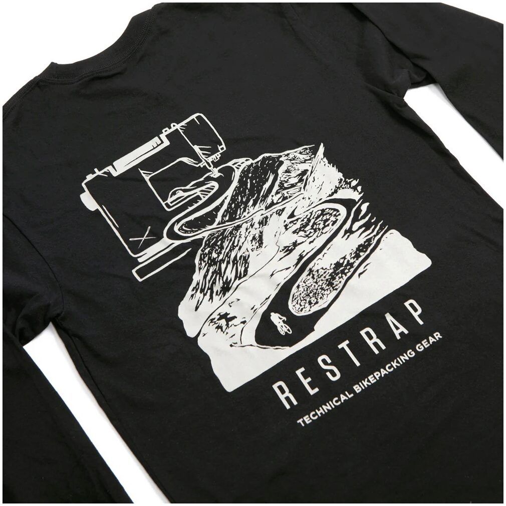 A design depicting everything that embodies Restrap; from producing everything in-house to bikepacking through the mountains.