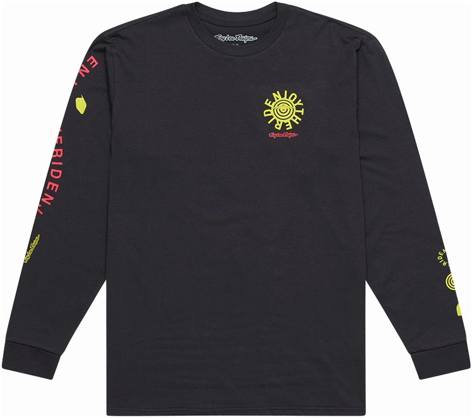 The Long Sleeve T-Shirt with Enjoy pattern features just one subtle graphic on the front and detailing on the sleeve, before exploding into a huge, colourful Enjoy graphic at the back.