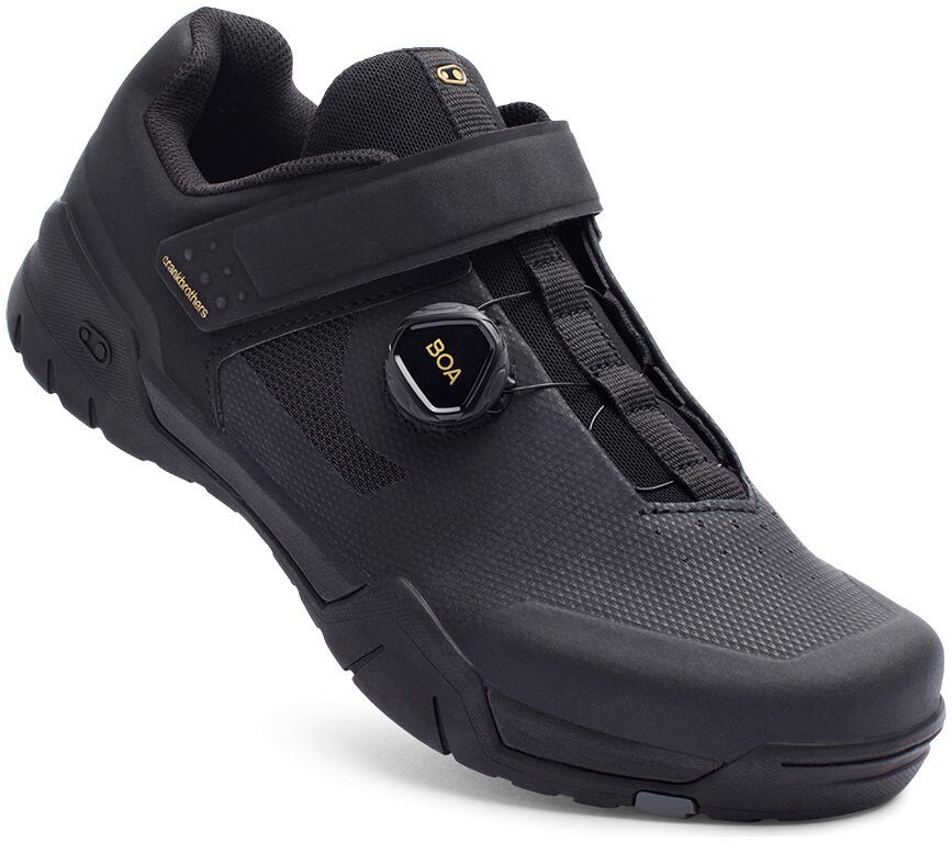 The Crankbrothers Mallet E clip-in shoe excels for enduro races or all-day adventures. Featuring a carbon-injected nylon shank, the Mallet E shoe offers pedaling efficiency without compromising on shoe-to-pedal interface. Our innovative Match System optimizes engagement for any MTB clip-in system, whether that’s Crankbrothers or SPD. It comes with Match shim and Crankbrothers cleat pre-installed in a neutral position so they are ready to ride with Crankbrothers pedals right out of the box.