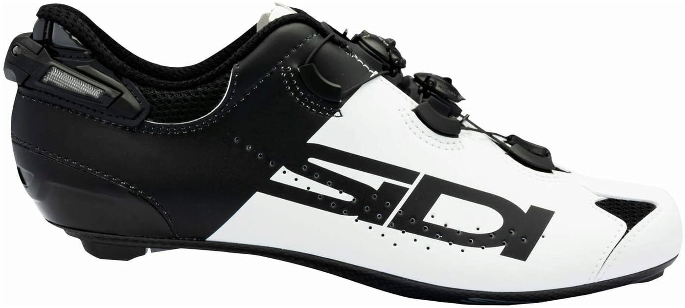 Twin Tecno-3 Push Flex dials offer precise fit adjustments, for improved aerodynamics, while Sidi's reflex adjustable heel retention device ensures stability during intense efforts.