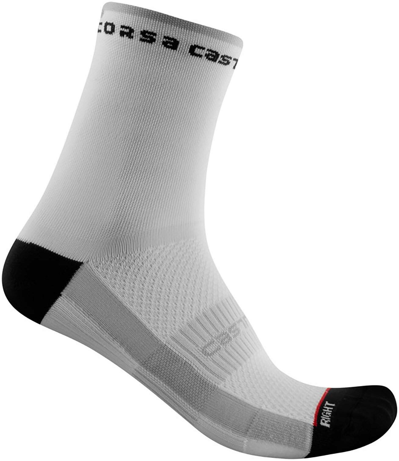 The Castelli Rosso Corsa Women's 11 Socks are tailored to keep your feet as comfortable and fresh as possible. The socks have a unique 200-needle knit that provides the right level of compression, stretch and cushioning for every part of the foot. The design is also asymmetrical with left and right foot specific shapes. Meryl Skinlife yarns with antimicrobial silver ions reduce odour.