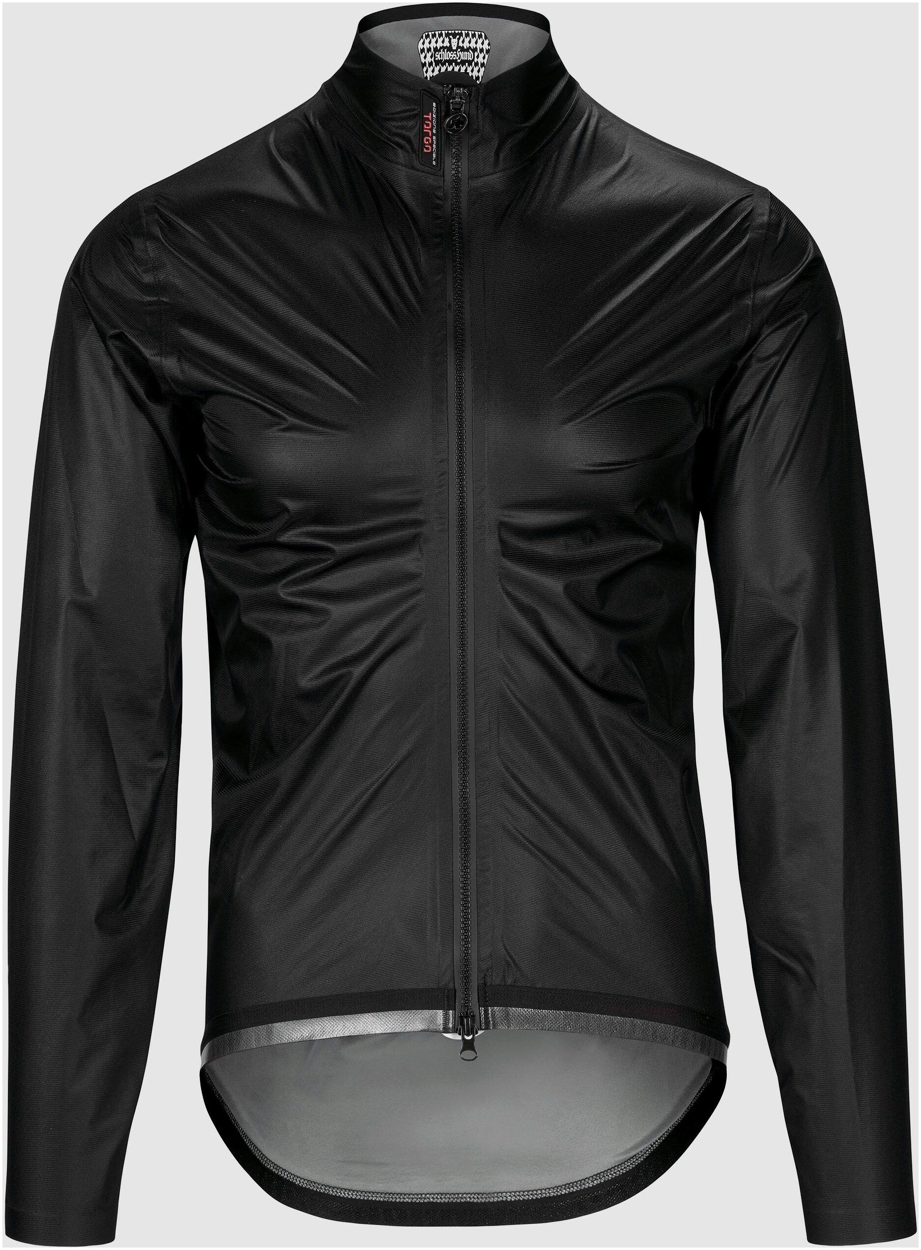 The material used is our proprietary Schloss Tex. This is our lightest 3-layer waterproof softshell to date, featuring a rustle-free, stretchy composition and highly breathable, watertight membrane.