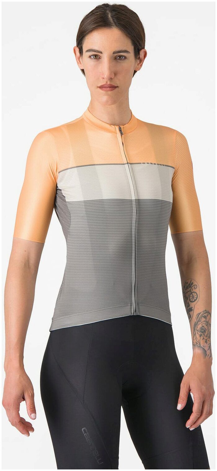 The light, fast and clean-looking Elegante Women's Jersey is primarily made with a stretchy mesh fabric that is great at moisture management and achieves a flattering fit, making it perfect warm weather cycling wear.
