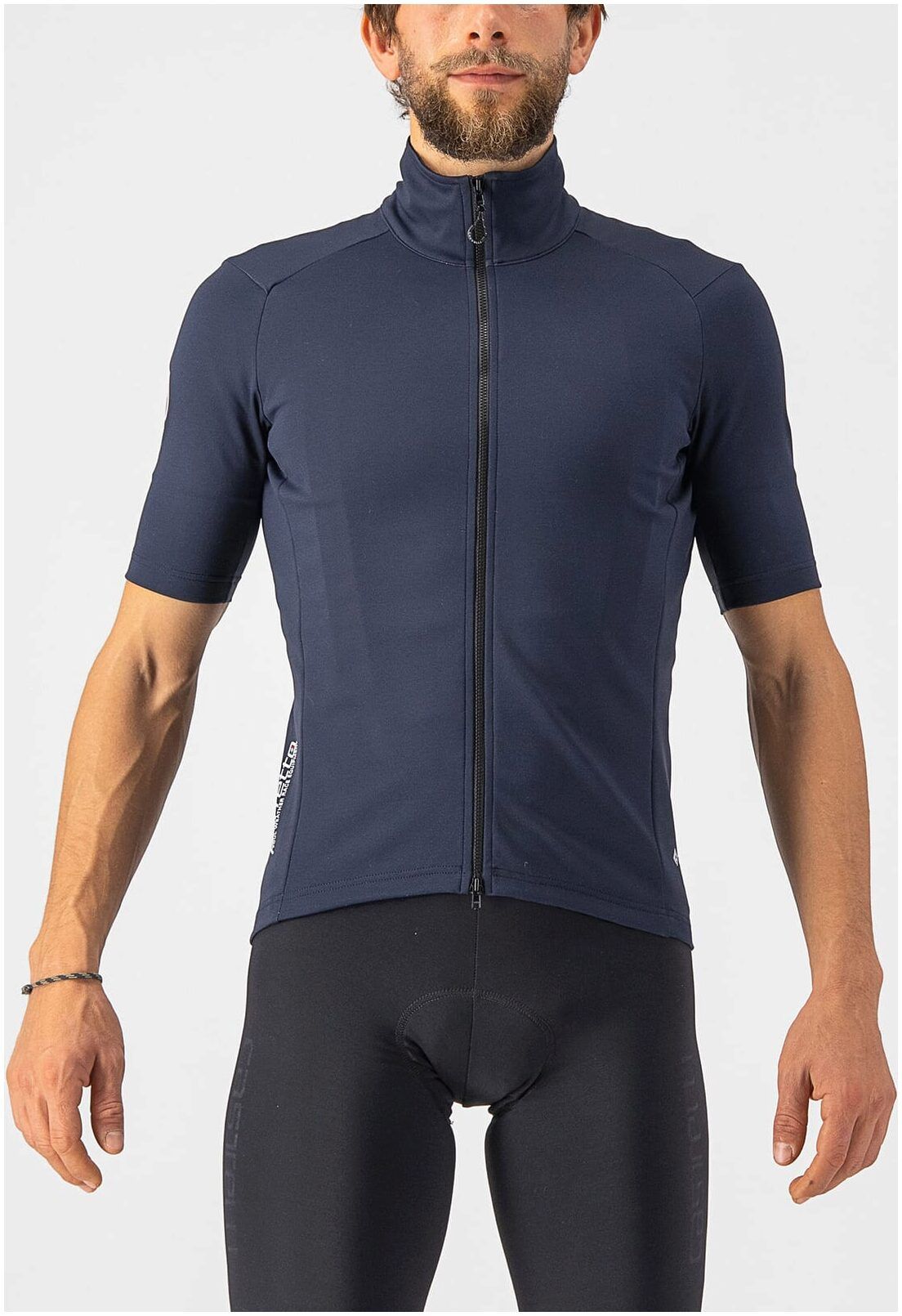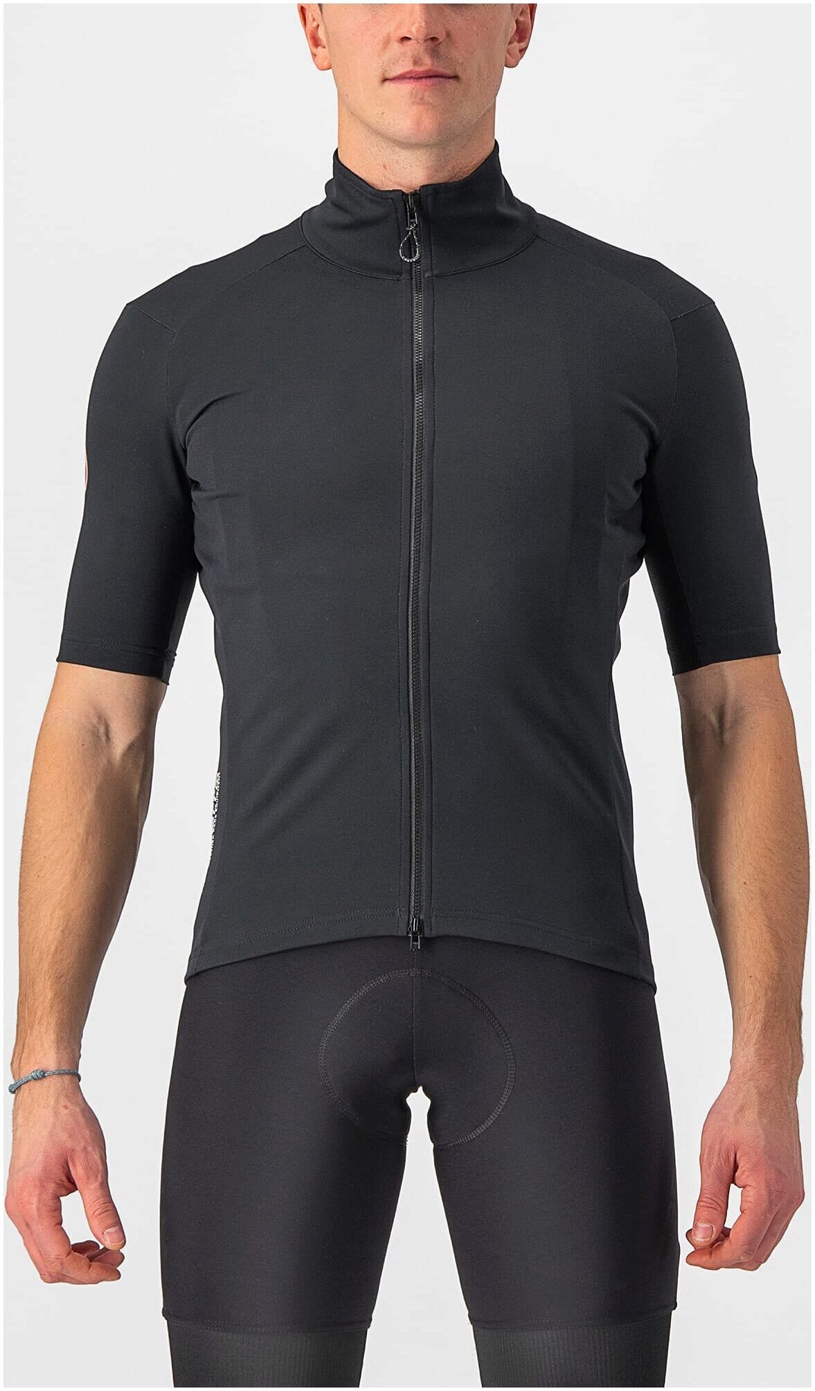 Mid-way between a jersey and a vest, the Castelli Perfetto RoS Wind Jersey shares the Gabba's short sleeves but is lighter and more breathable. It is composed from a mixture of GORE-TEX INFINIUM™ WINDSTOPPER 0 Stretch fabric at the front and sleeves, offering wind proofing with breathability, and stretchy Nano Flex Light Woven fabric at the back, which repels rain and lets in enough wind to help you stay dry, without getting cold.