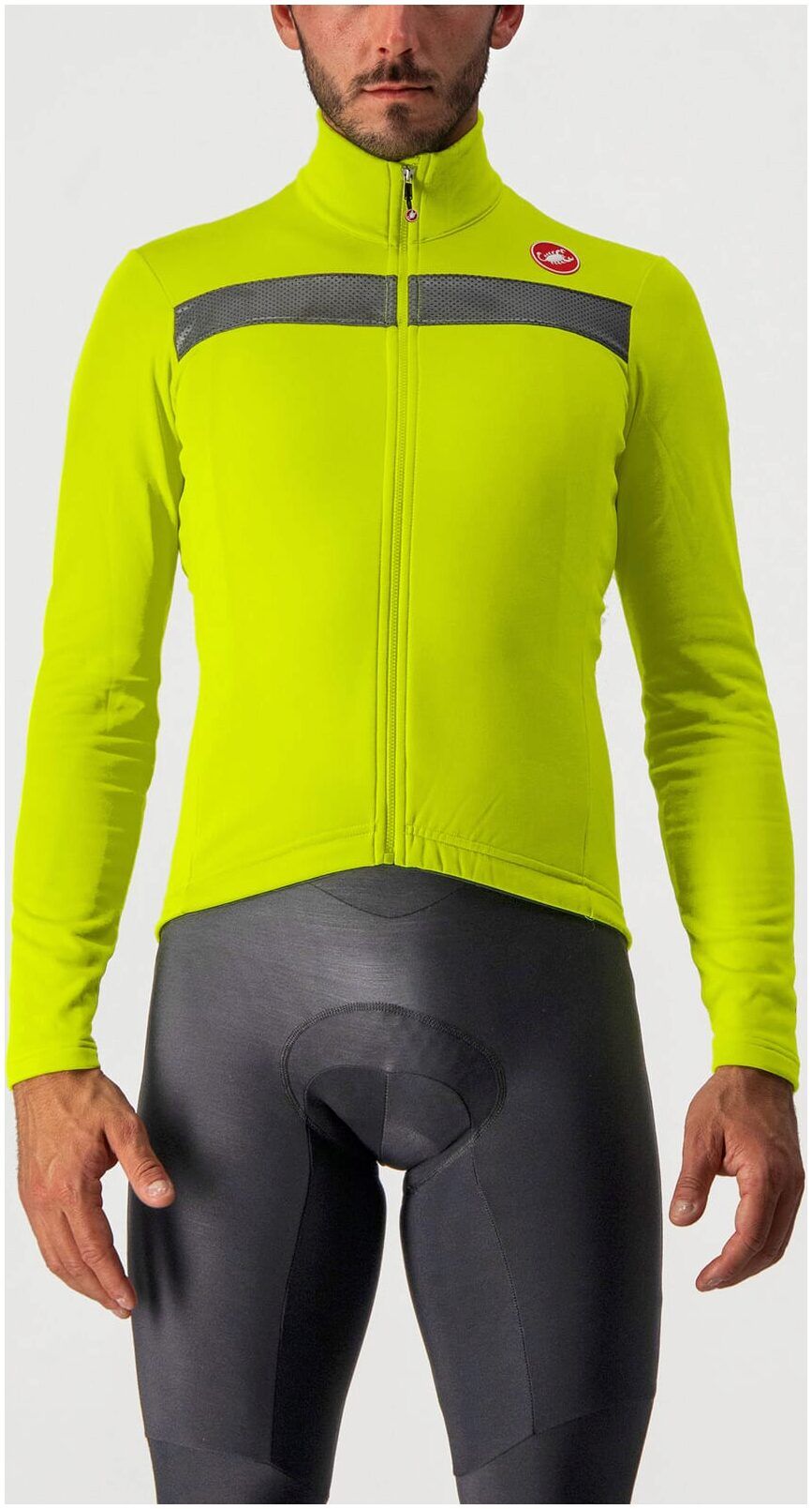 The whole jersey is made from Castelli brushed fleece fabric, offering increased warmth over the previous version whilst breathability is unaffected and is still given Castelli's highest rating. The inclusion of perforated reflective panels front and rear gives great low-light visibility too.