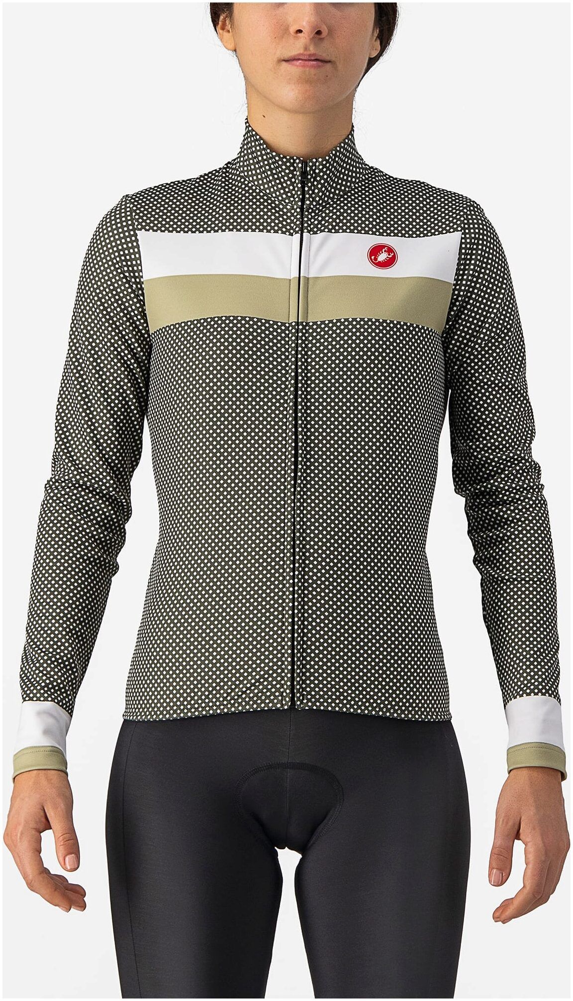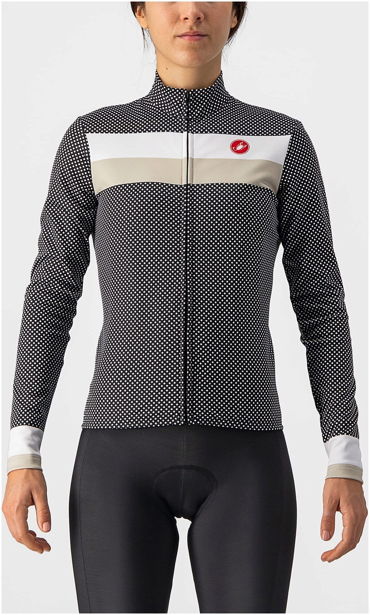 The Castelli Volare Women's Long Sleeve Jersey is distinguished by its eye-catching printed graphic and its ability to counteract the cold, thanks to its construction from an even warmer version of Castelli's own polyester Warmer fabric, with a brushed fleece inner layer.