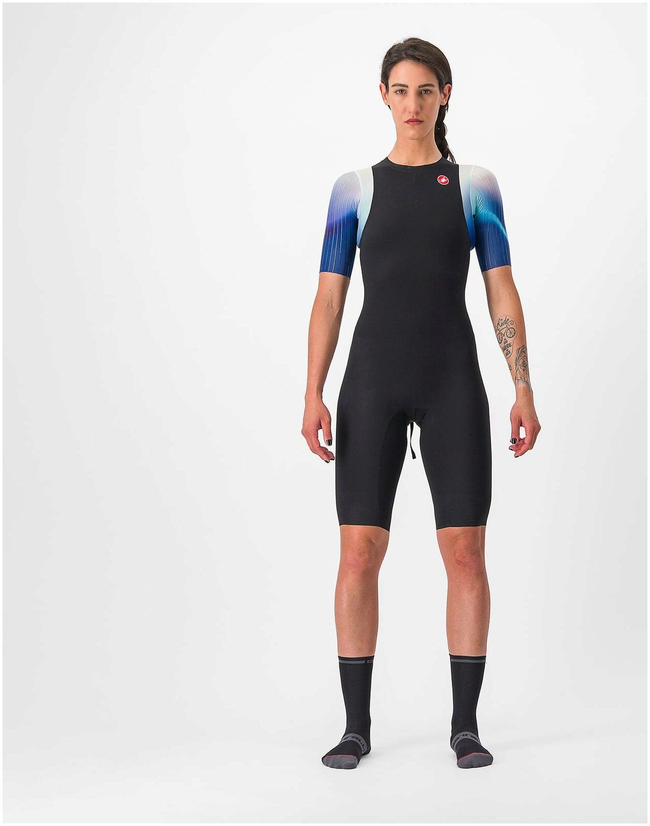 The Castelli Elite Women's Swim Skin is streamlined for tri events where wetsuits aren't permitted. Conceived during the creation of an Olympic short-course suit for the German Triathlon Federation, its focus is uncompromising speed.