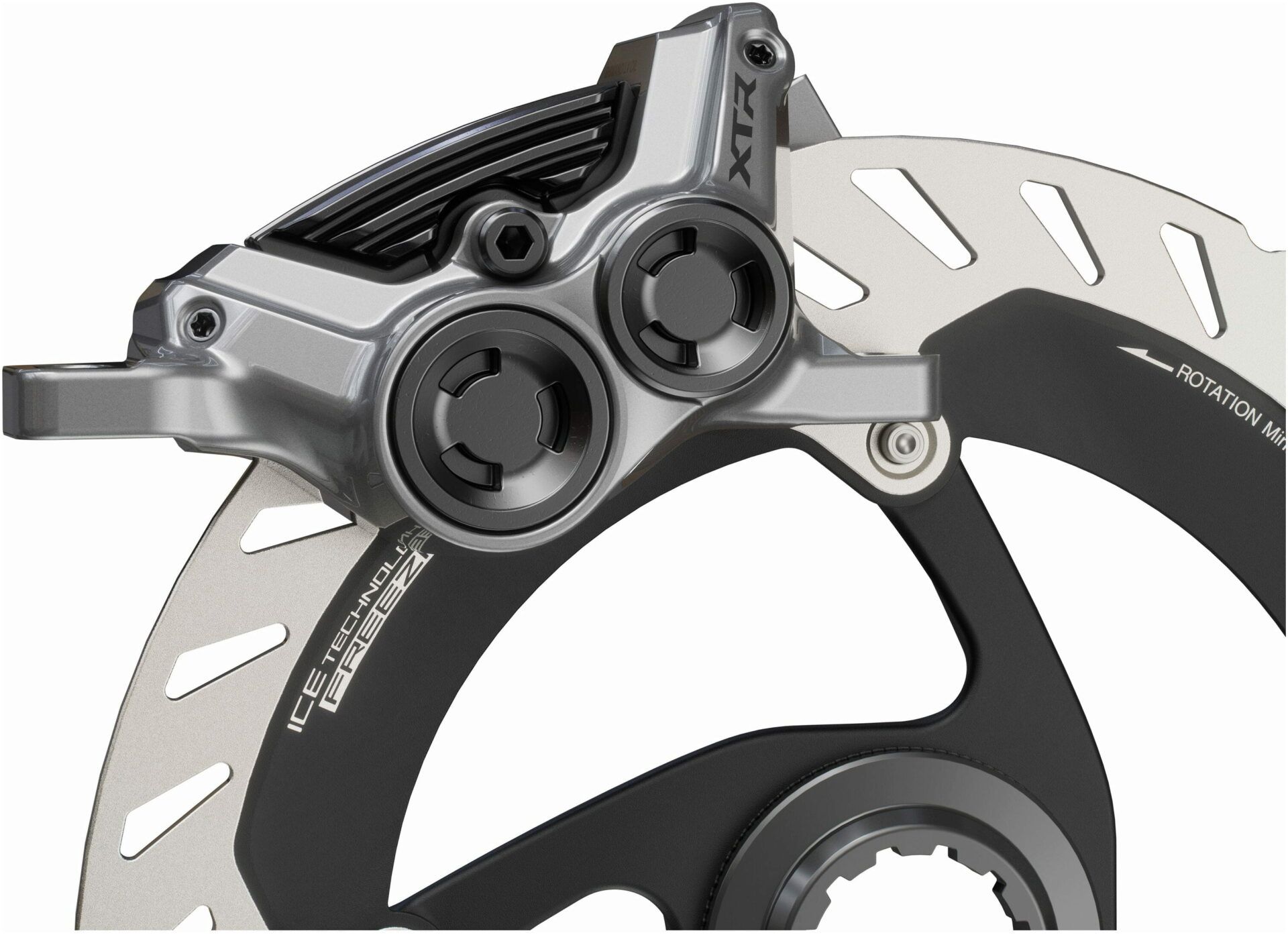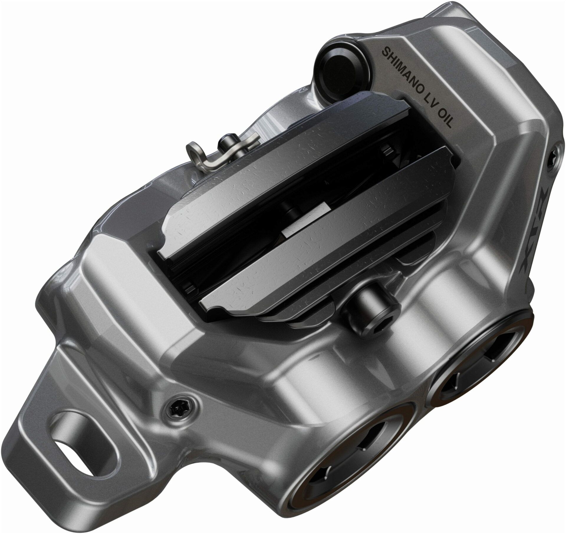 Shimano XTR cutting edge braking technology, lightweight and powerful easily adaptable post-style 4-piston hydraulic disc brake caliper.