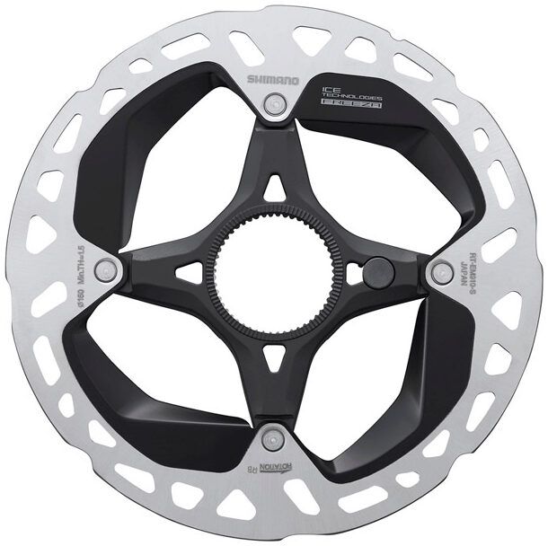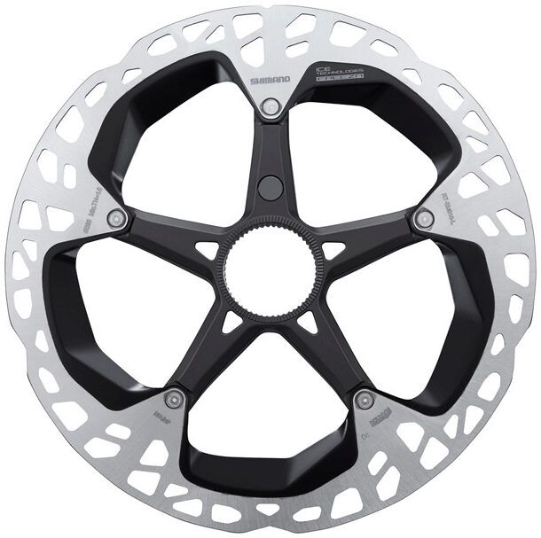 Shimano RT-EM910 E-Bike disc brake rotors for speed sensor systems deliver powerful and consistent brake performance in all riding conditions. The compact and lightweight Ice Technologies Freeza rotor significantly reduces heat build-up in the brake system to ensure consistent high performance braking even on the steepest downhill stretches. Shimano's Centre Lock mounting system makes installing and removing rotors quick and easy thanks to the spine mount and lock ring design.