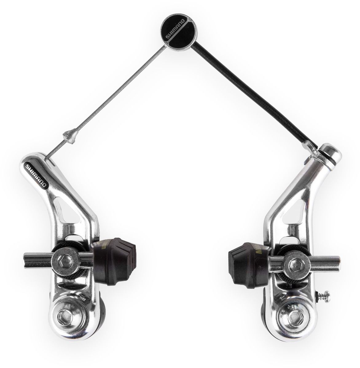 Alloy cantilever brakes with a polished silver finish, ideal for mountain, cyclo-cross, and touring bikes.