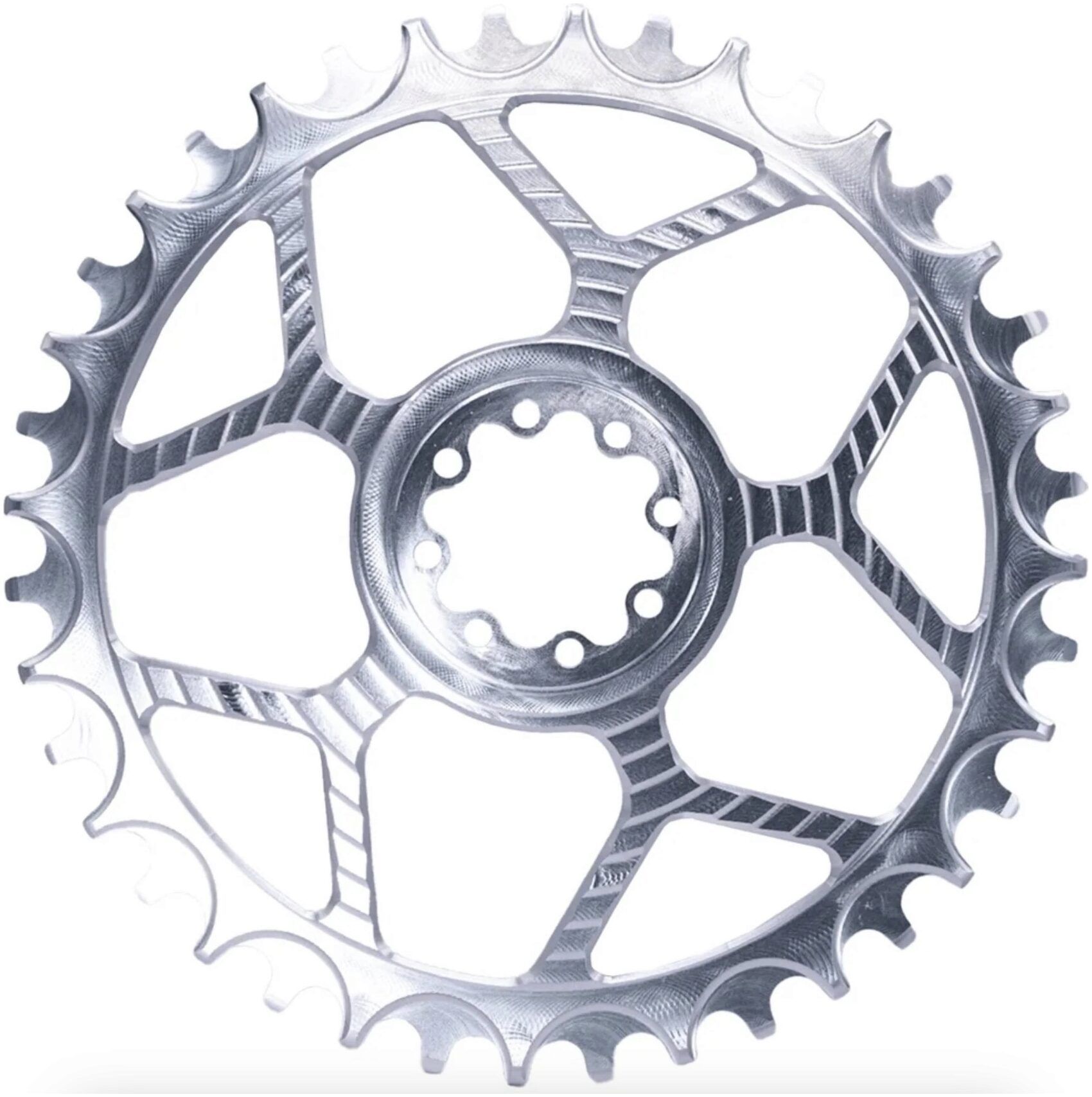 Introducing the 8-bolt direct mount aluminum chainring. This works with SRAM or Shimano 12-speed chains