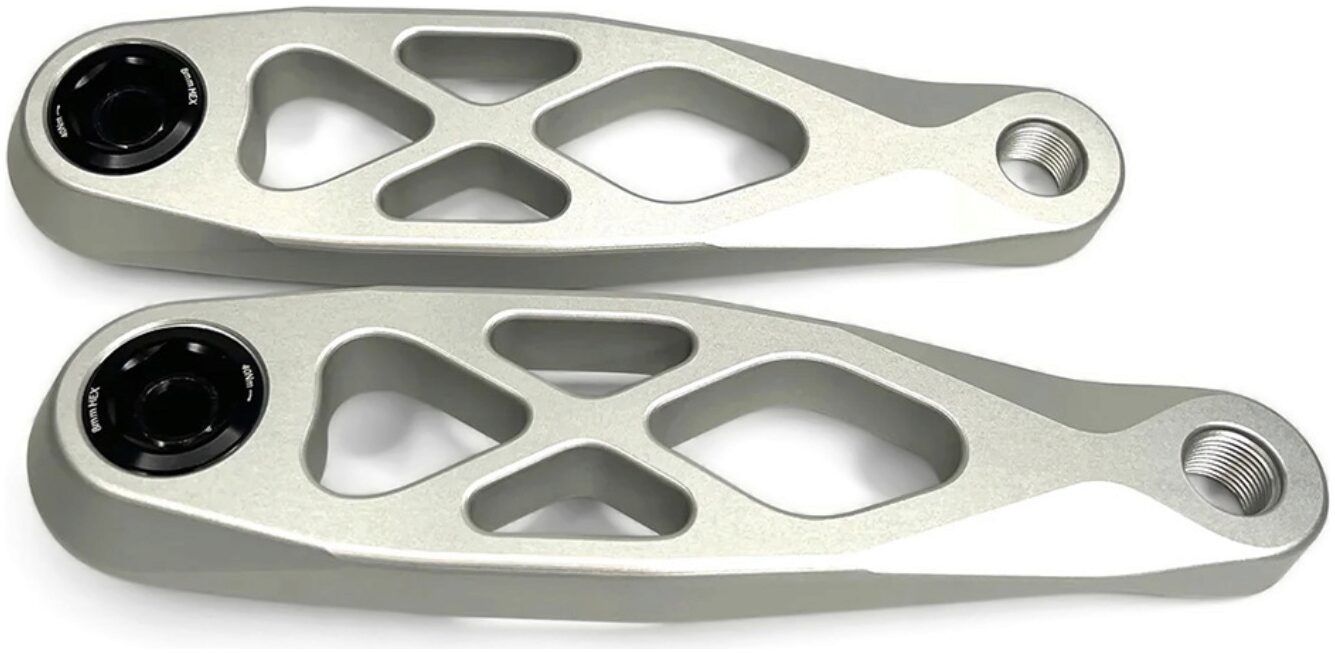 Easy to install. Simply remove your stock cranks with an 8mm Hex and install your 5DEV Crank arms just like you would on your MTB. This system uses the same interface as the SRAM cranks.