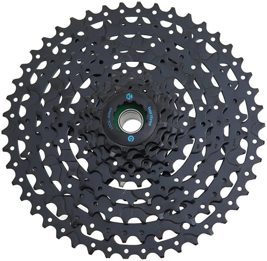 The Box Three cassette draws from both its Box One and Box Two siblings to create a sensible all-rounder. All sprockets are stamped from steel and subsequently, the larger ones are pinned to steel spiders. The main difference here versus Box Two is the use of additional weight-reducing holes on the sprockets.