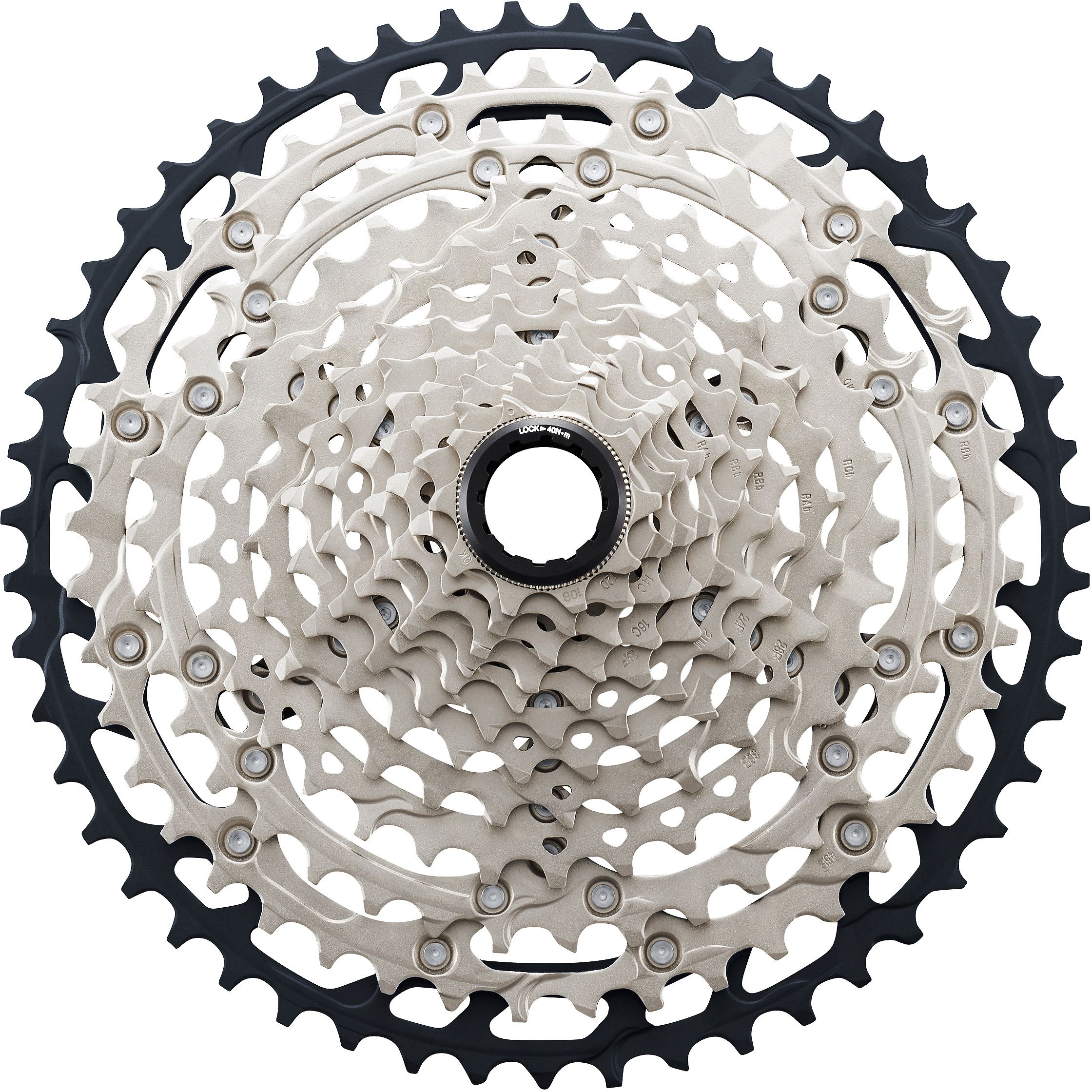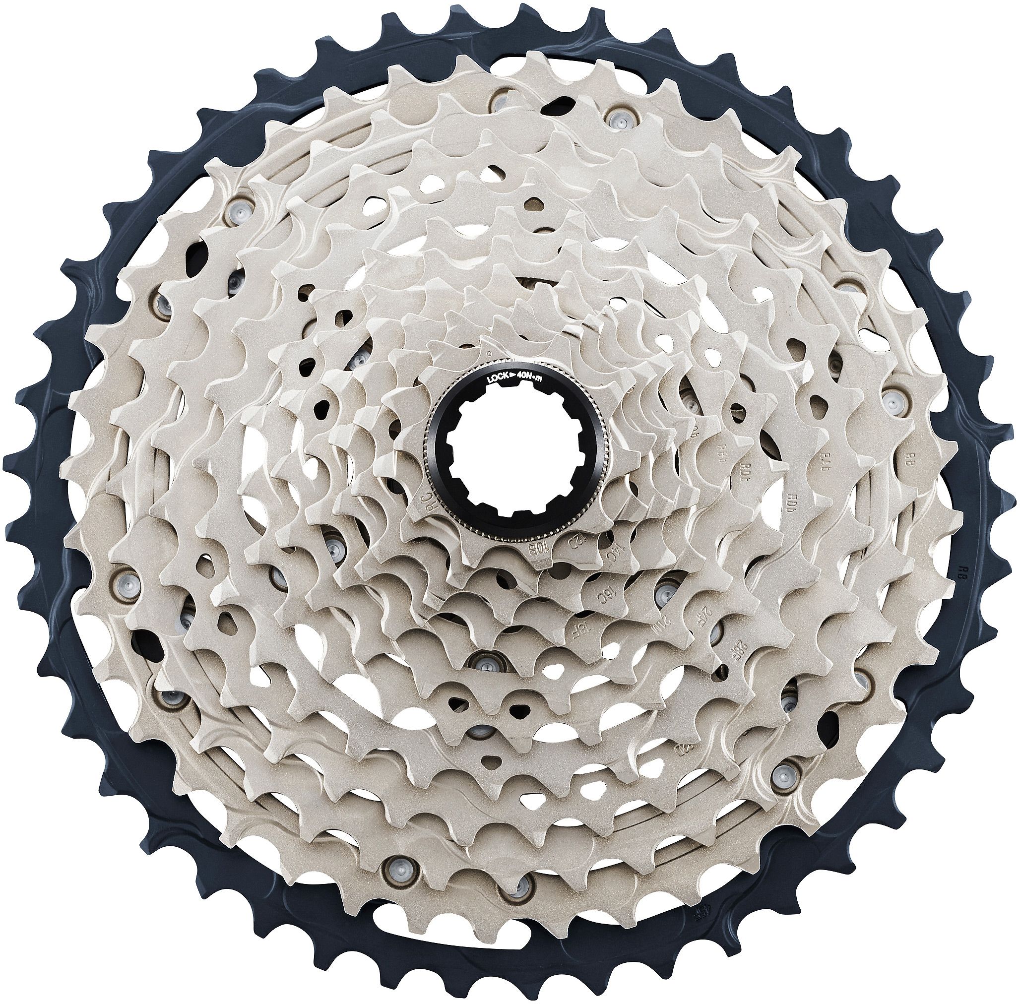 - SLX M7100 12-Speed Micro Spline MTB cassette featuring light weight minimal design sprocket carrier