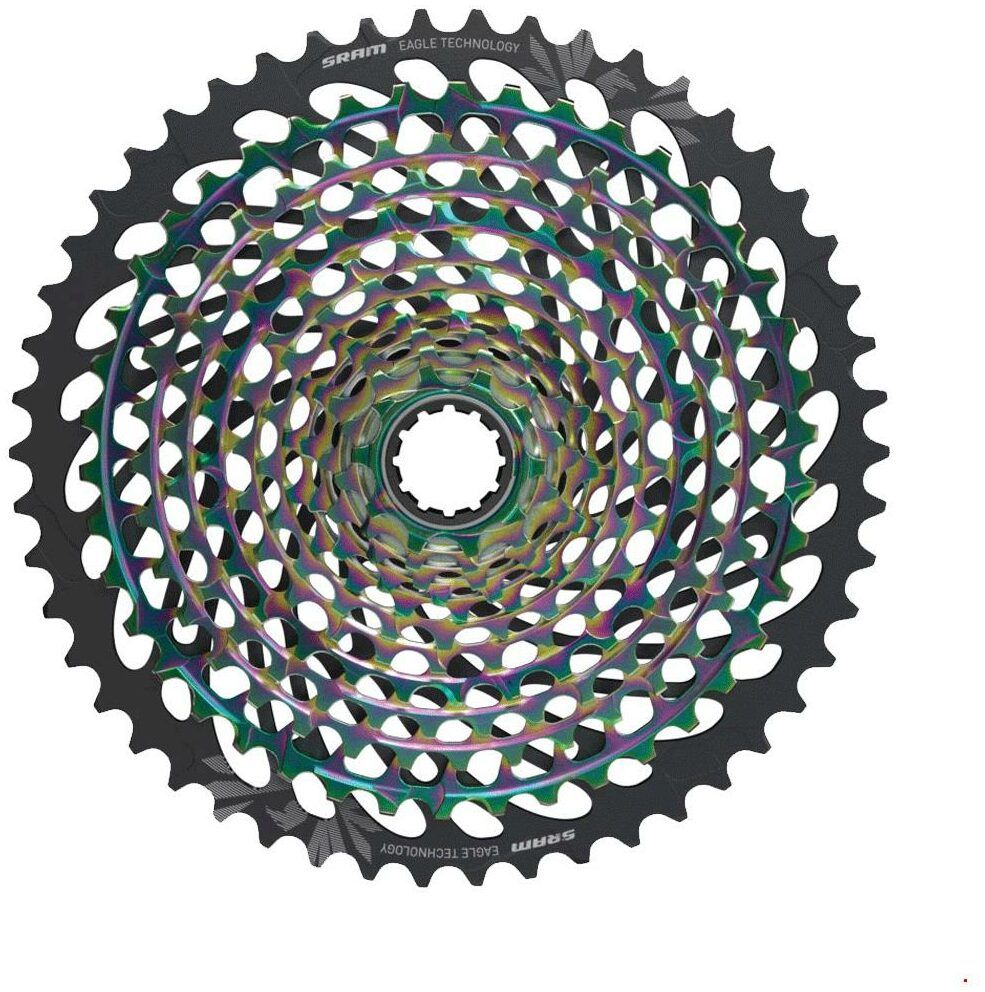 Whether for prized race machines or the build of their dreams, the XG-1299 cassette is the ultimate, giving riders unprecedented 520-percent range thanks to the new 10-52 tooth-span. Stronger racers are now free to choose larger chainrings for more top-end speed, without sacrificing climbing range. More time is spent higher up in the cassette where athletes power transfer is most efficient and wear is minimized. Featuring the industry’s strongest X-Dome architecture and proven XD Driver Body, it’s also backwards compatible to give riders even more Eagle upgrade options for their current bikes. With multiple Olympic, World Cup and World Championship titles, it also matches up perfectly to XX1 Eagle AXS enabled componentry. The XG-1299 cassette utilizes the full depth of the new Eagle Colorsystem. Available in Black to Gold to Rainbow and all-new Copper, the XG-1299 cassette completes the expression of the worlds most accomplished and sought after bikes.
