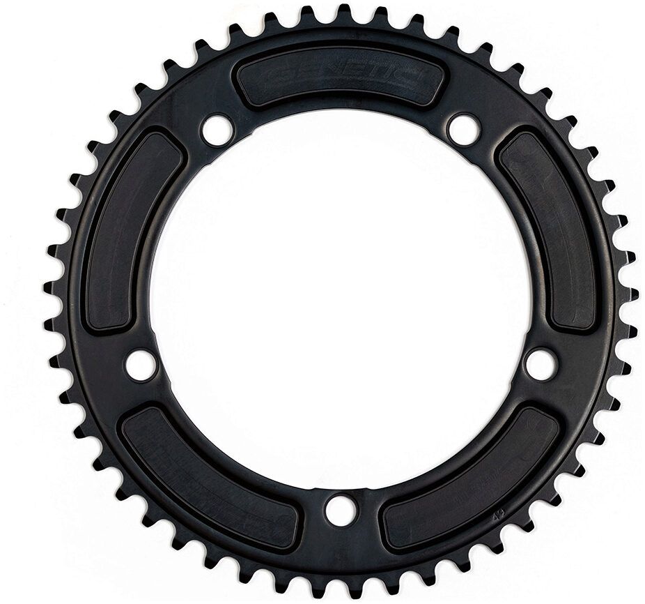 Hard wearing CNC machined 7075 T6 chainring with 1/2 x 1/8″ teeth.