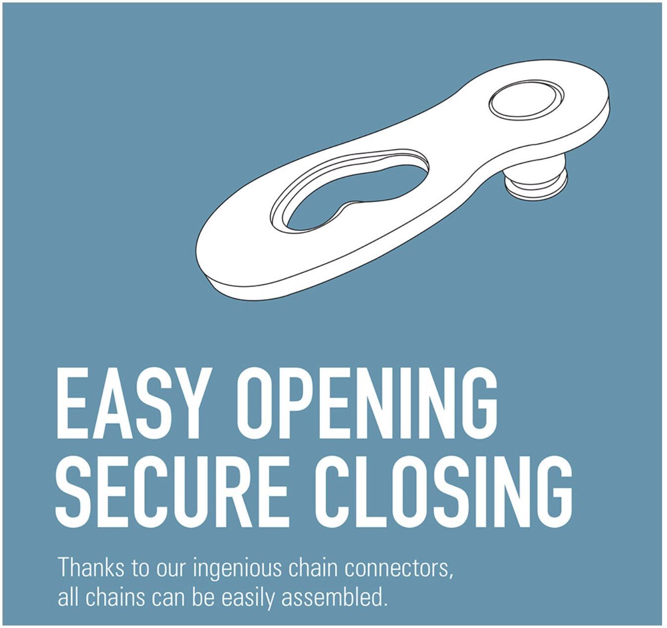Those who expect the highest performance will find no alternative to Connex chains: The optimised geometry of the plates enables extremely rapid and virtually silent gear changes on all derailleur systems.