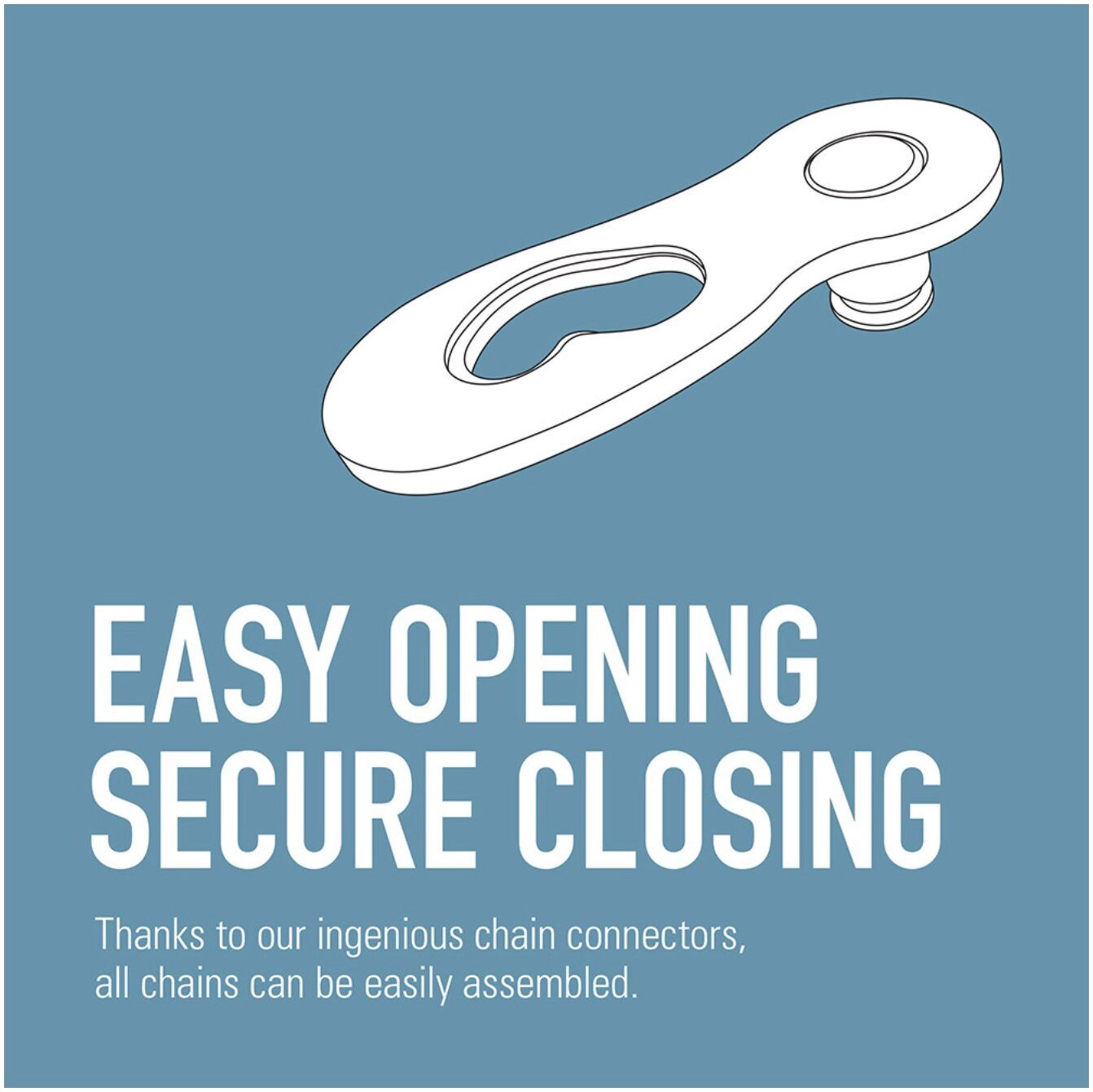 Those who expect the highest performance will find no alternative to Connex chains: The optimised geometry of the plates enables extremely rapid and virtually silent gear changes on all derailleur systems.