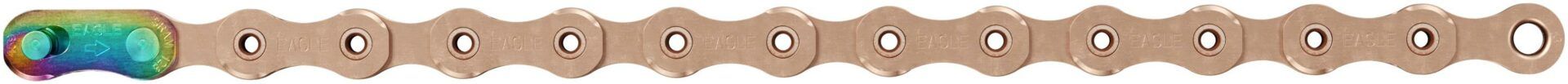 A chain that’s more than the sum of its hollow pins or its fanatically shaped chamfers. Because it takes more to make a chain XX1 Eagle worthy. XX1 means uncompromising strength at an ultra-light weight with performance consistency and silky smooth, whisper-quiet operation. Now completed with our all-new Eagle ColorSystem setting the aesthetic bar and giving riders colour options from Black to Gold to Rainbow, including all-new Copper.
