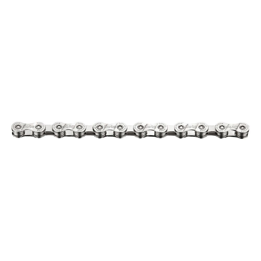 Taya 8-speed chain with solid plates and solid pins. Anti-rust and anti-scratch properties ensure an extremely long life (potentially 10000km), with self-lubricating properties that allow for minimal oiling.
