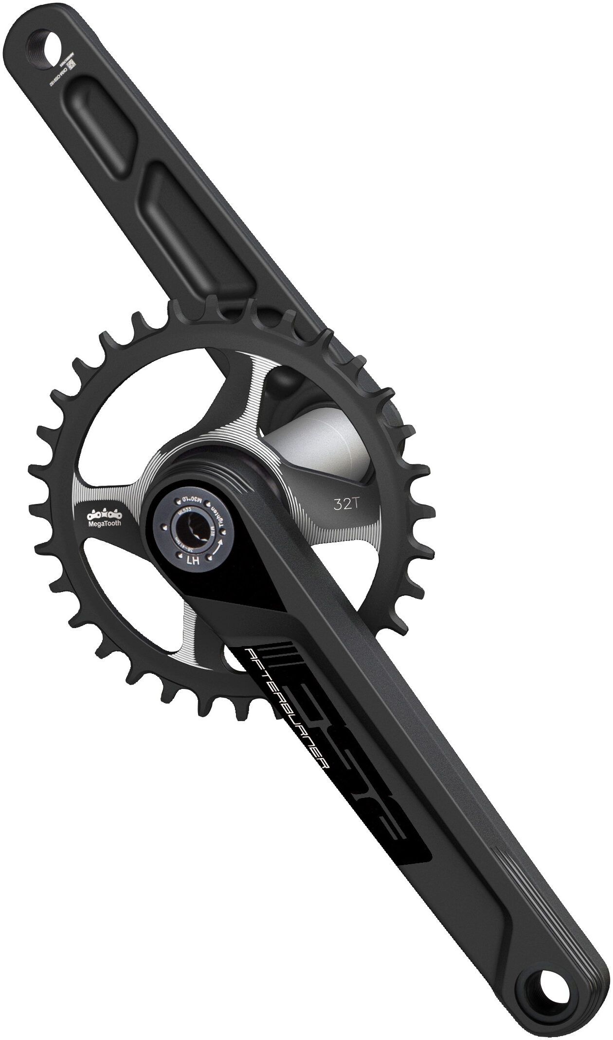 The 11/12 speed Afterburner has been completely redesigned for its highest performance yet with lighter crank arms, a smaller spider and AL7050 chainrings. The svelte new arms are hollow-forged from tough aluminum and clamp to a 30mm alloy axle for the ultimate rough-trail strength. The chainring bolts are also chromoly, while a clever design of the non-driveside arm eliminates the weak point of a pinchbolt. It’s available in 170mm and 175mm lengths. The chainring is CNC-machined from hard-wearing 7075 aluminium, and the whole crank is optimised for 11/12 speed drivetrains. The Megatooth chainrings ensure amazing security thanks to an ultra-deep profile and Narrow-Wide spacing that lock the chain on, and gearing ranges in two-tooth increments from 28T to a huge 38T. Overall weight is a paltry 695g. The sandblasted matte finish combines with polished highlights and sections of beautiful aluminum to exude a monolithic energy that belies its low weight. Subtle logos only enhance the look while laser etching means the graphics last too, no matter what the weather throws at them.