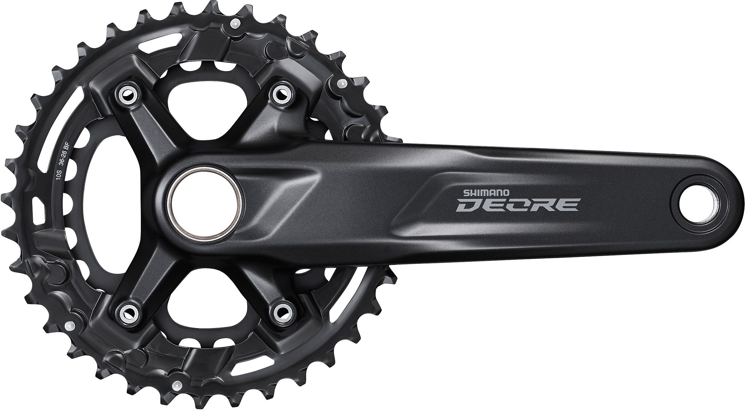 The Shimano Deore FC-M4100-B2 mountain bike crank delivers precise and reliable shifting for 2x10-speed drivetrains. This 2-piece crank offers a 36-26T gear combination and a 51.8mm chainline that is compatible with 148mm O.L.D. frames.