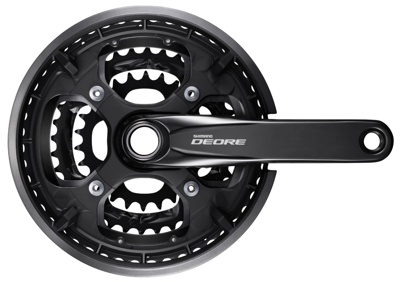 Great value Shimano Deore HollowTech II chainset with guard for 10-speed Dyna-Sys MTB HG-X transmission systems. The HollowTech II chainset features hollow forged crank arms which are both lightweight and rigid whilst being incredibly strong and durable.