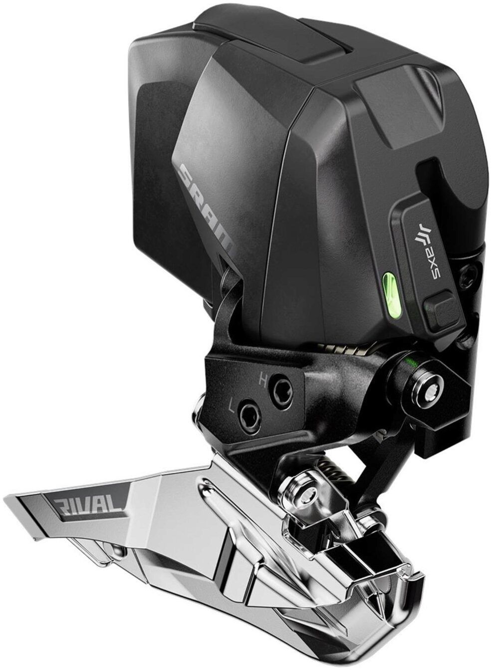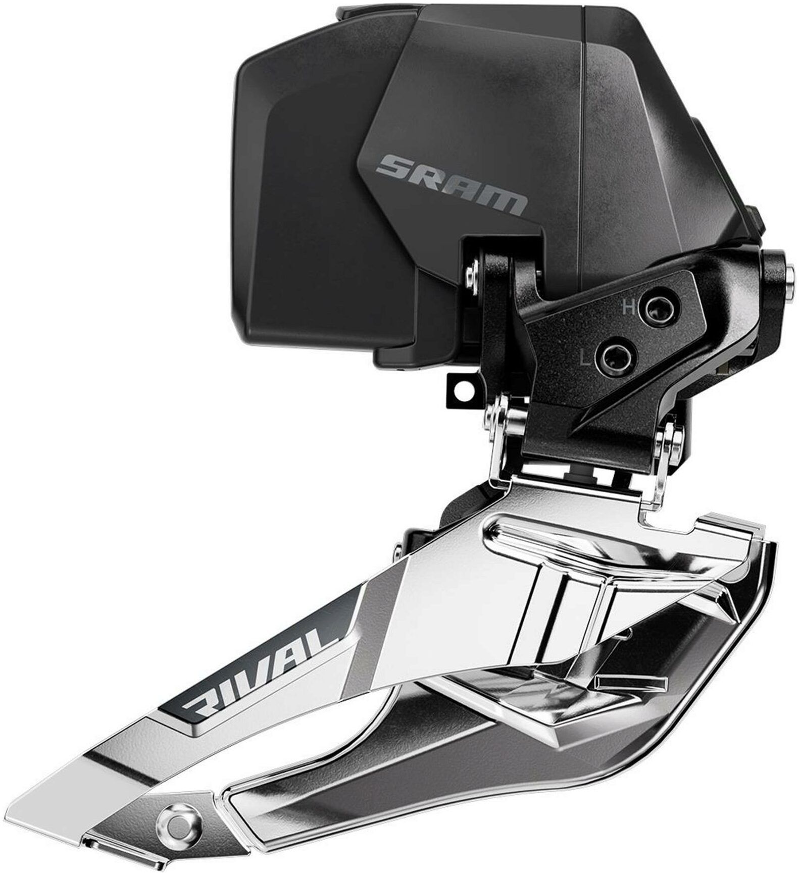 Experience elevated front shifting. The Rival AXS front derailleur uses Yaw cage movement and auto trim for silent, rasp-free running, and a narrower cage shape that integrates with SRAM's X-Range chainring design for fast, clean shifts. SRAM's setup tool means you'll get the ideal position without any fuss, too.