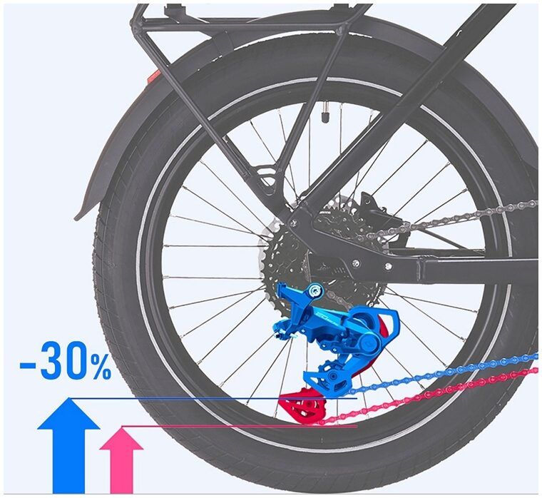 The Shimano CUES RD-U4010's compact cage design is optimized to provide plenty of ground and tire clearance while maintaining smooth shifting performance for small-wheel bikes.