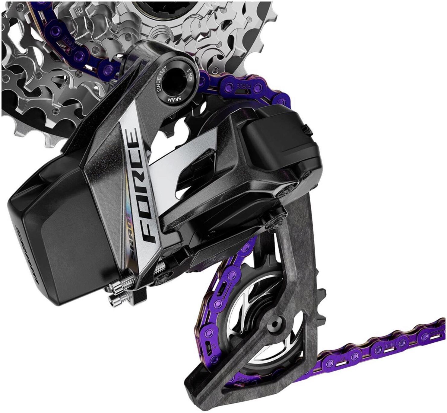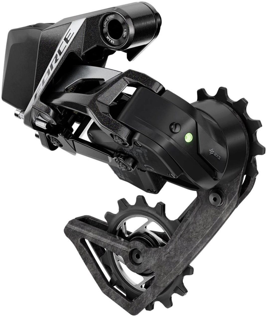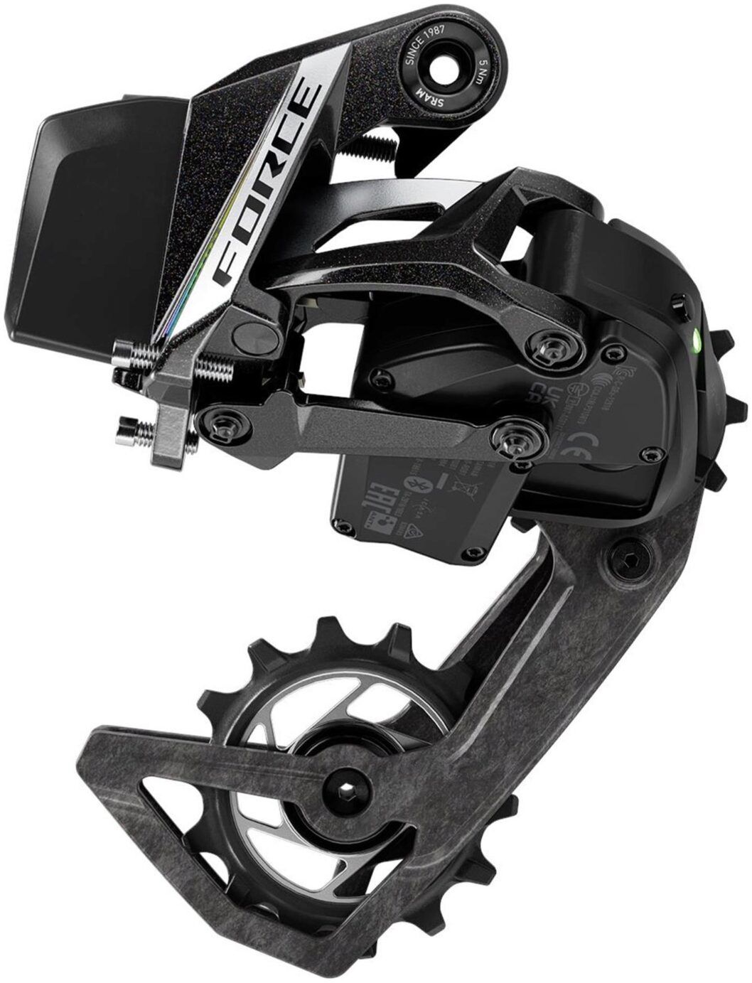 Lighter, faster and more capable than ever, the Force AXS rear derailleur does it all in style. Covering cassette ranges from 10-28T up to 10-36T, this wireless wonder has a new, lighter cage and a larger pulley wheel to increase drivetrain efficiency . One derailleur ready for 2x or 1x , the steepest climbs and descents, all while shedding 12g from previous generation Force.