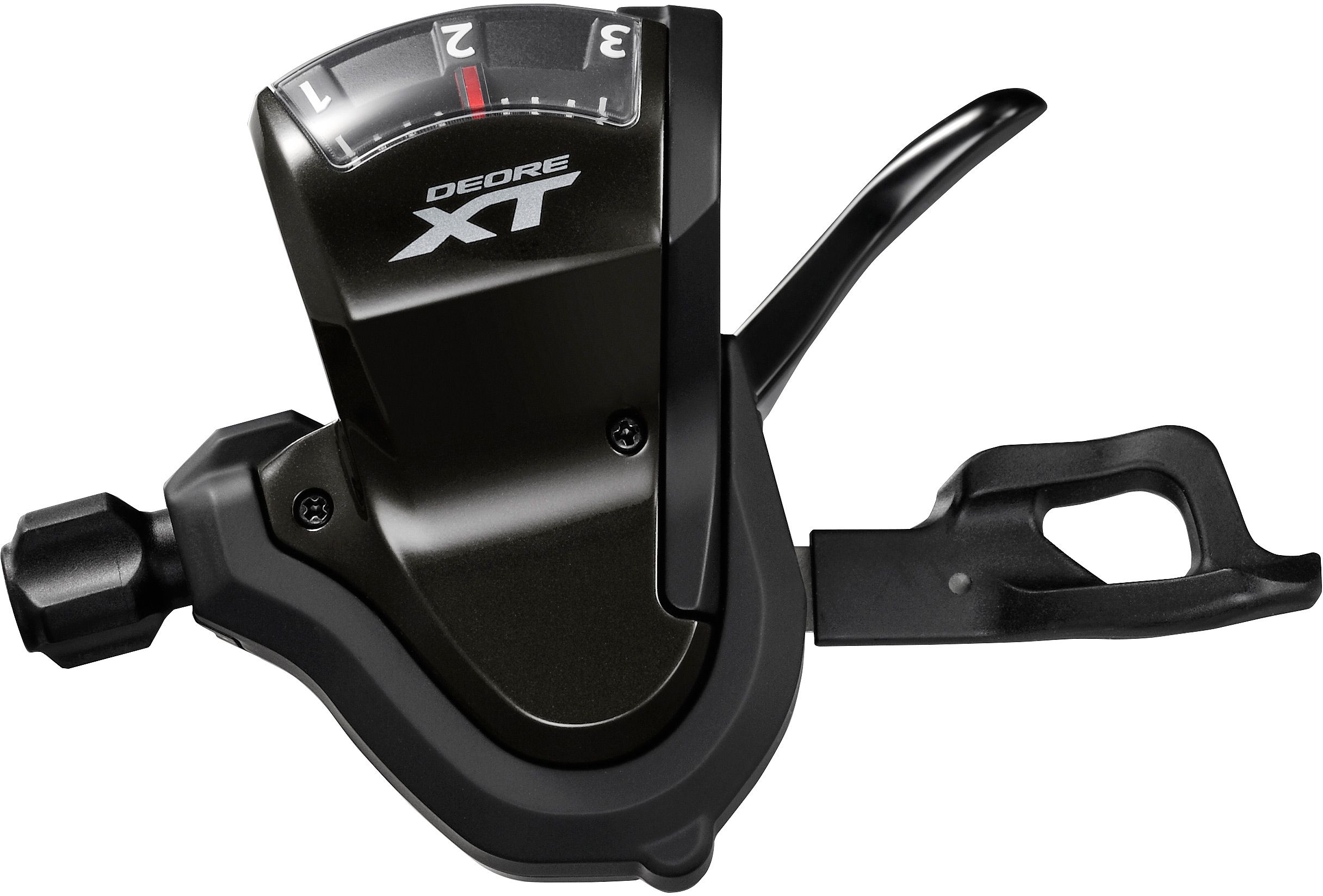 For reliable shifting in all conditions, Shimano's Deore XT SL-T8000-R shift lever features an ergonomic design, long lever body, and anti-slip texture on the main paddle.