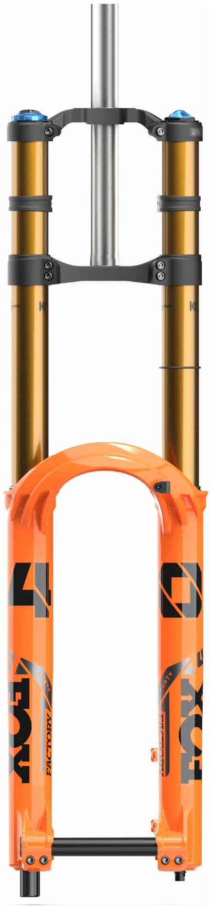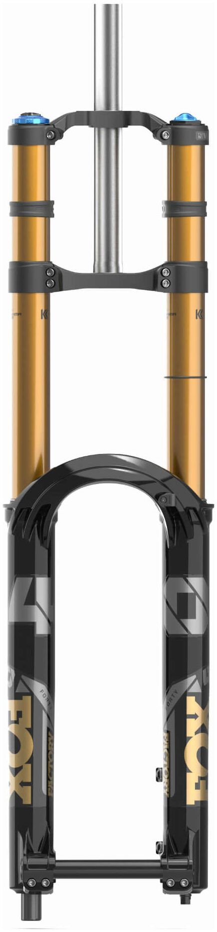 The 40’s floating thru axle allows perfect chassis alignment and reduces unwanted friction between the upper and lower fork legs, providing much smoother suspension movement throughout the entire range of travel.