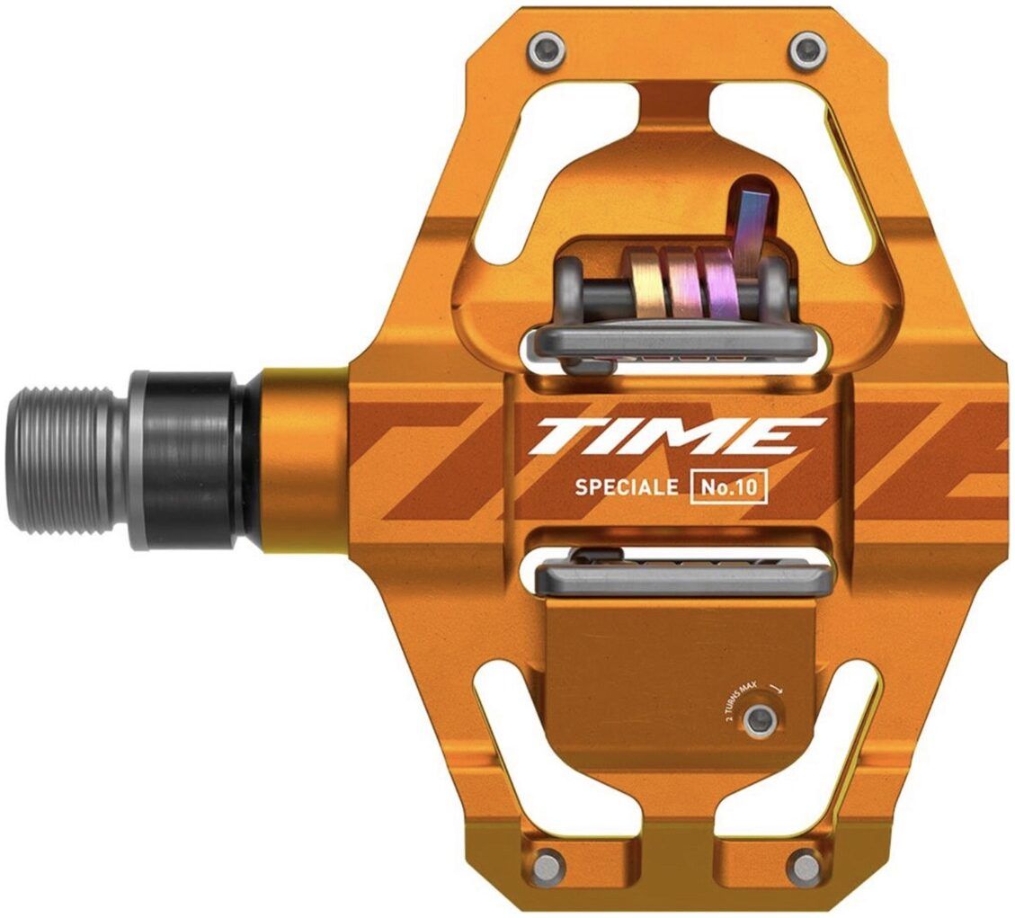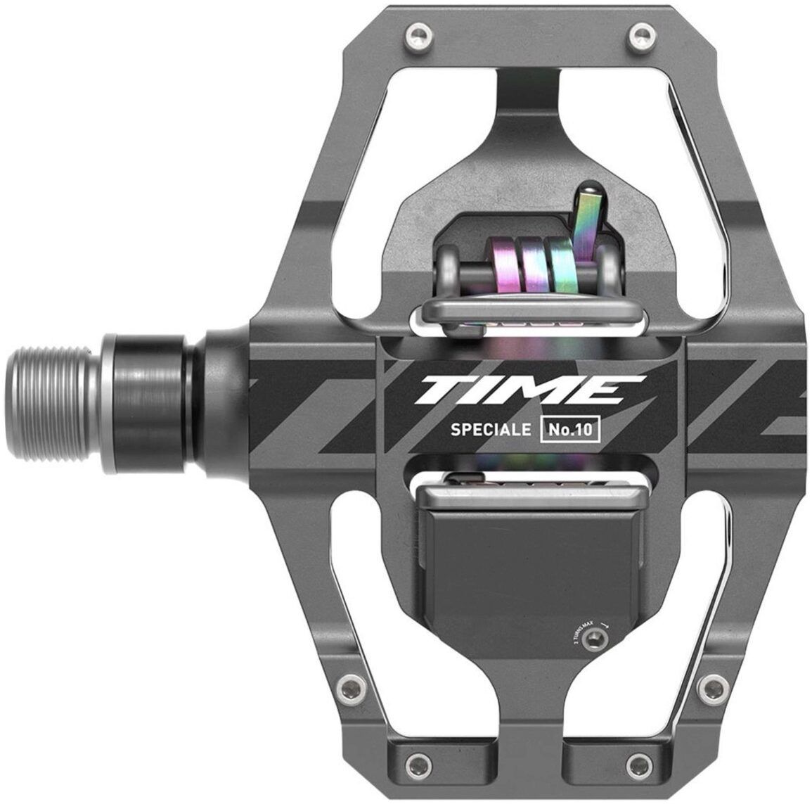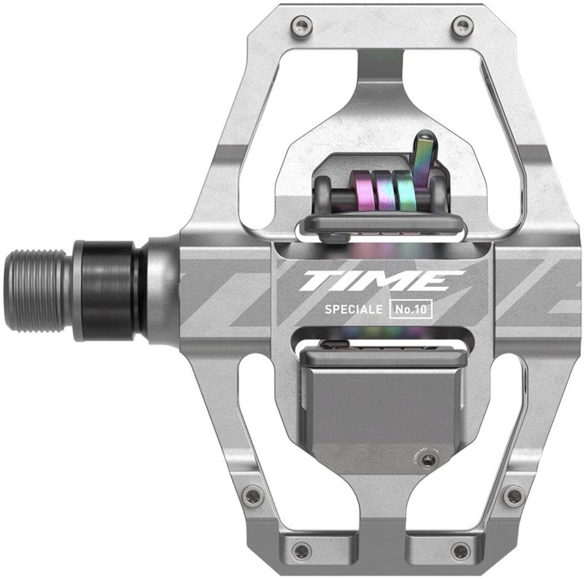 The Speciale 10, while inspired by the premium Speciale 12, also stands on its own as a high-performance pedal. This pedal is up to the challenge of whatever downhill, Enduro and trail riding throws your way. Pick from two sizes: Large (69x90mm) for downhill and Enduro, or Small (64x80mm) for trail or Enduro. Grippy and durable, the Speciale 10 features an alley anodised platform and oversized hollow steel spindle. The pedal is spring-retention adjustable (micrometric) to meet the demands of advanced riders and features Time's ATAC design for easy entry, predictable release, and mud clearance for reliable performance in all conditions.