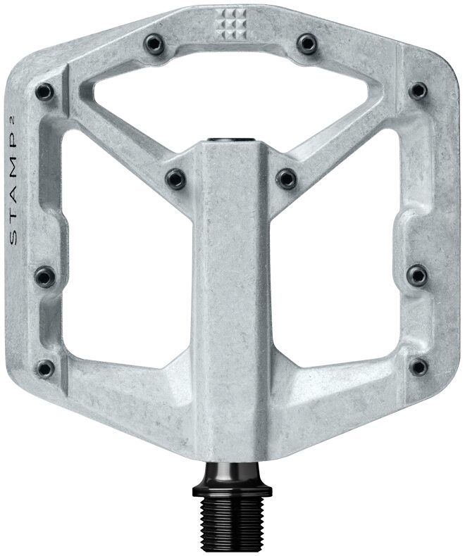Size-specific aluminum platform pedal provides optimal shoe/pedal interface.