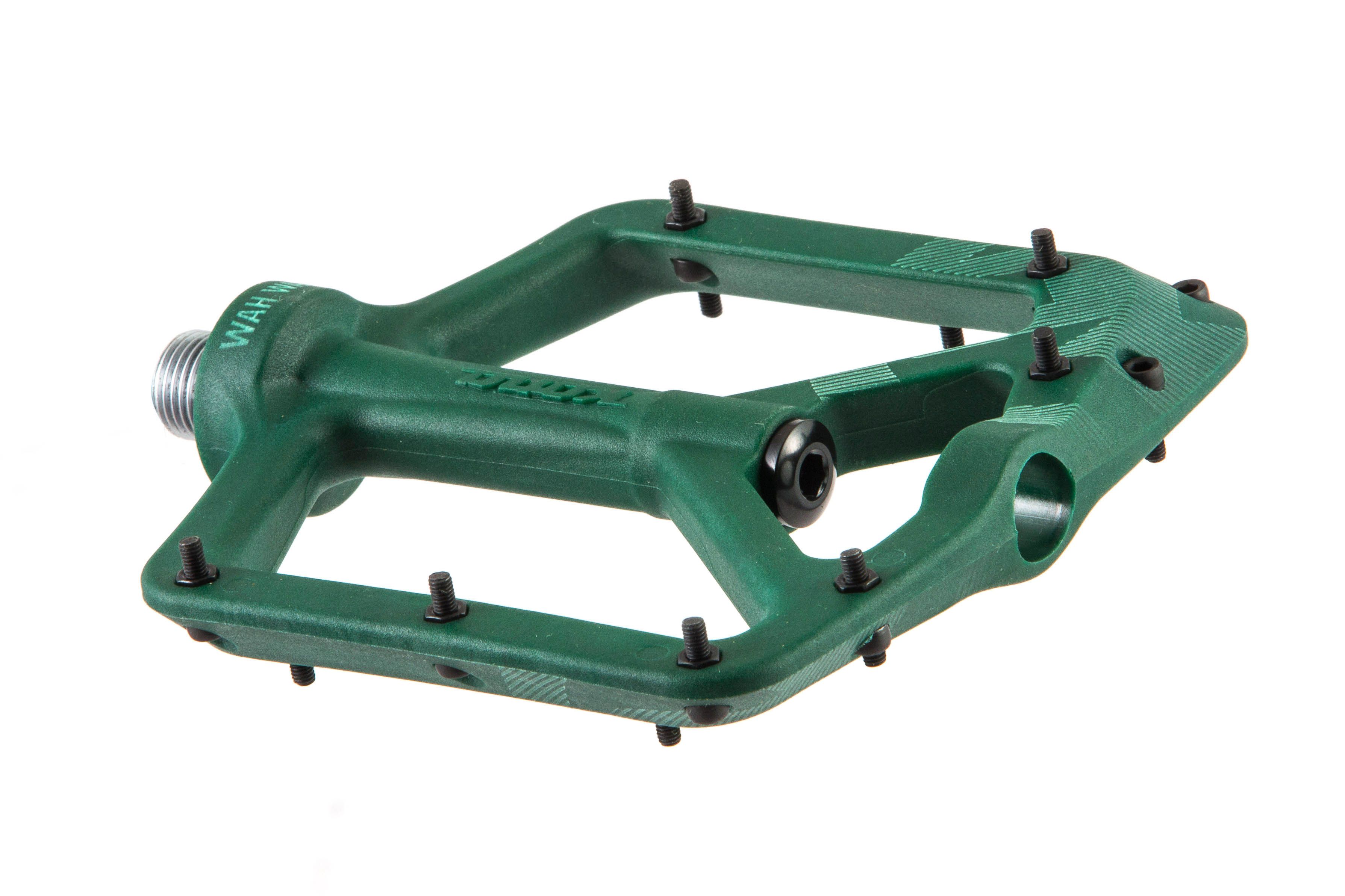 Introducing the Wah Wah 2. These glass-fiber reinforced, nylon composite flats weigh in at 360 grams per pair – making these super light and super durable. With a thin profile, wide platform, and 14 replaceable pins. these pedals ensure a solid grip for all of your biking adventures. Pair that with a 100% serviceable bearing system and you have durability and lightweight performance all in one.