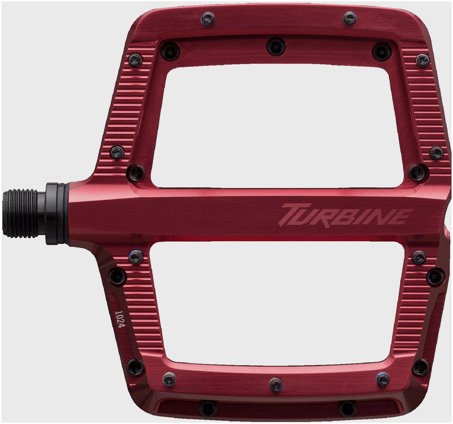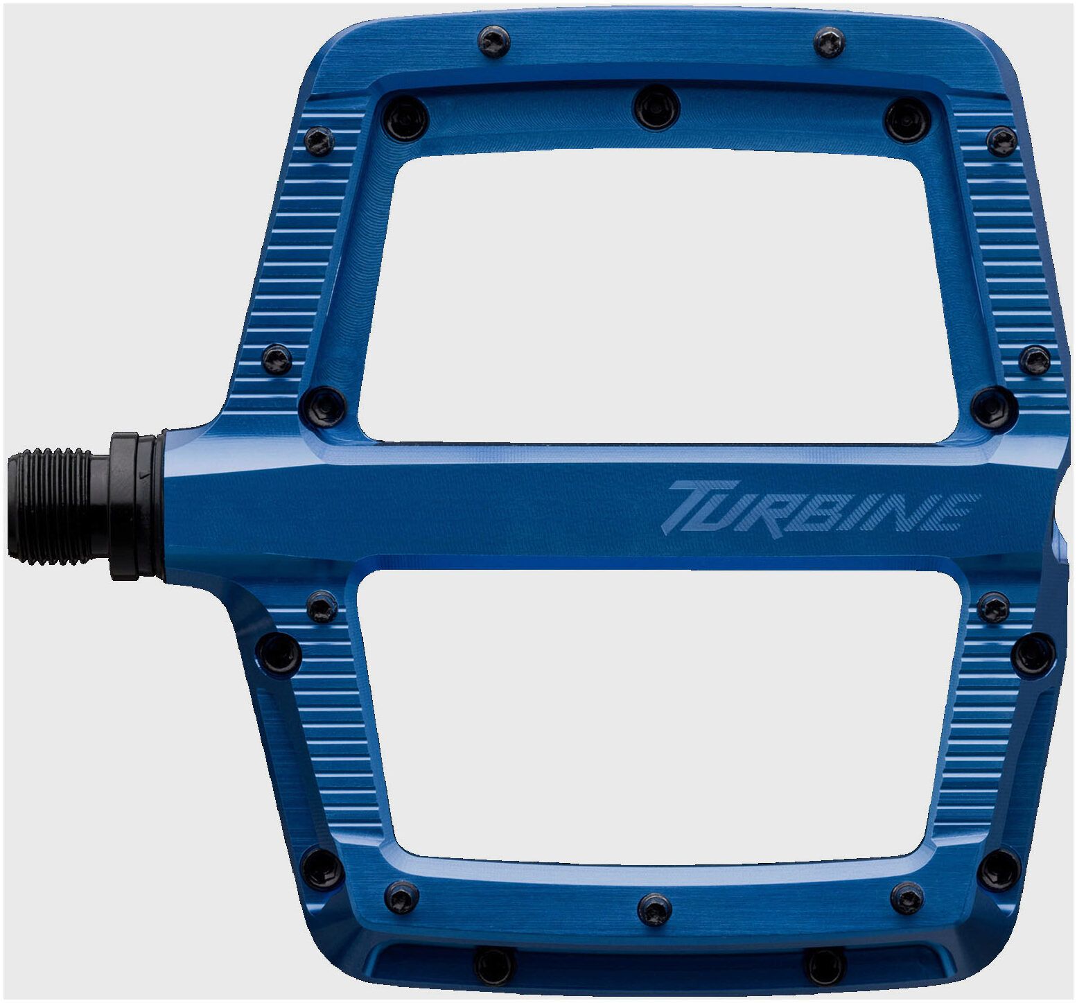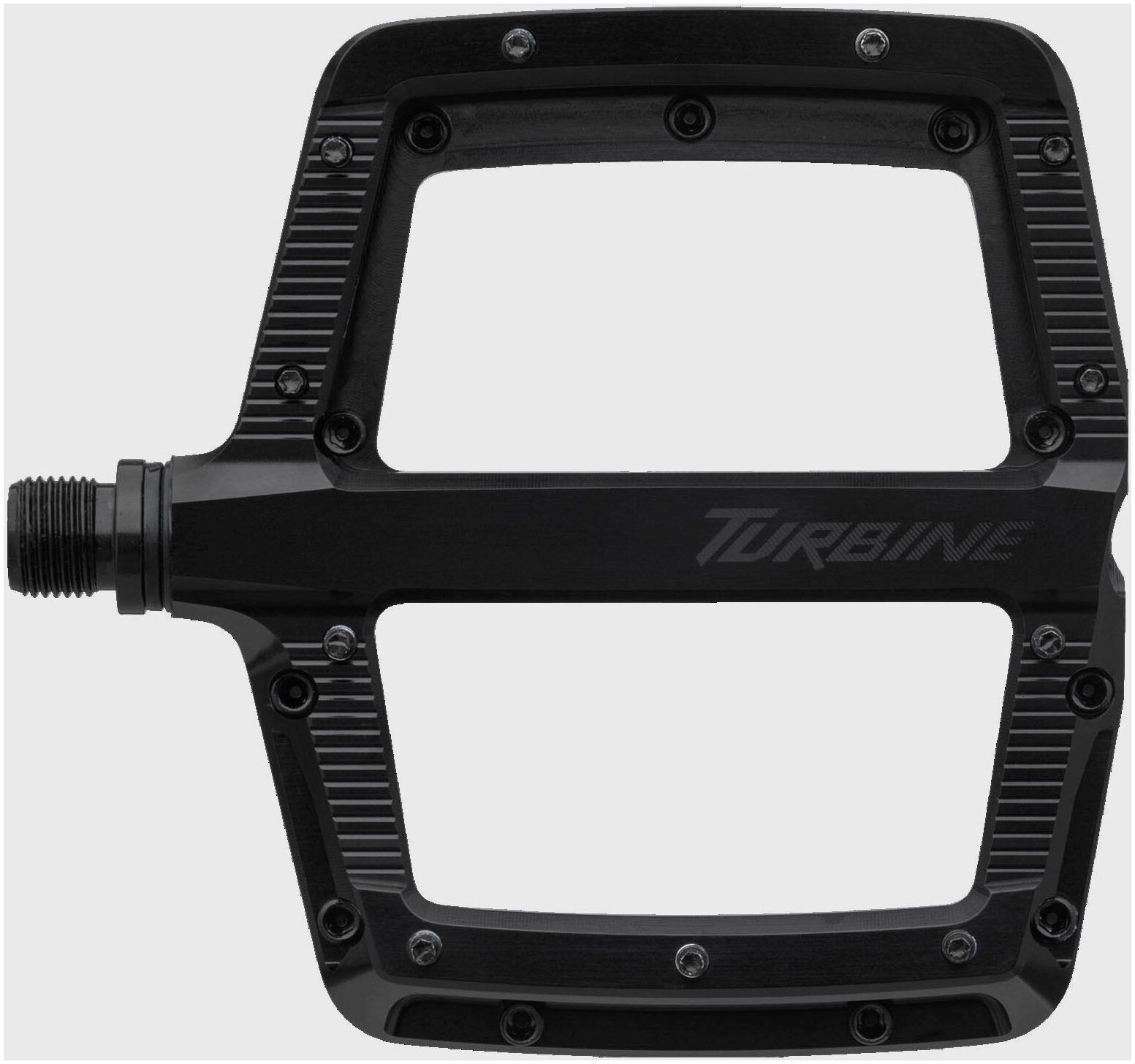 A concave pedal gives riders a locked-in feel by cradling your foot in a "pocket" created by the platform. Turbine is designed with concavity in all ways—front to back, inboard to outboard. With the added grip from the pins, riders can pedal and descend with a more locked-in feel than ever.