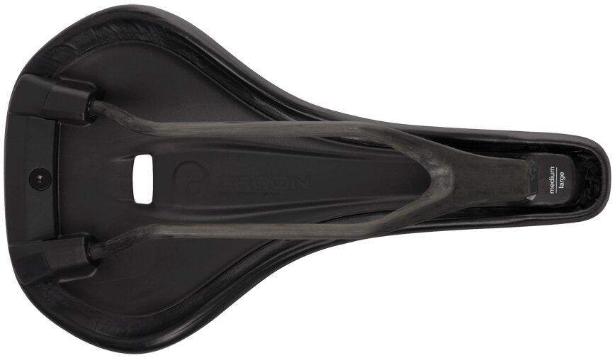 Eliminating unwanted pressures: The progressive relief channel, which deepens towards the rear, leads to an opening through the saddle shell. This construction combines all of the advantages of a cut-out saddle without the potential disadvantages. This design gives the saddle shell more forgiveness as well as specifically relieves perineal pressures. Too much pressure in this area often leads to discomfort and numbness in the genital area.