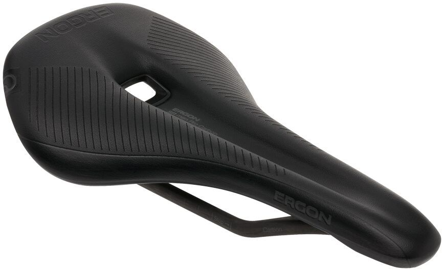 The SR Pro Carbon brings ergonomics to a lightweight, high-performance saddle. It weighs only 175 grams with carbon rails and a carbon composite seat shell. With an ergonomically designed shape and relief channel, as well as OrthoCell® inlays to distribute the sitting load, this saddle is both light, supportive, and pressure relieving.