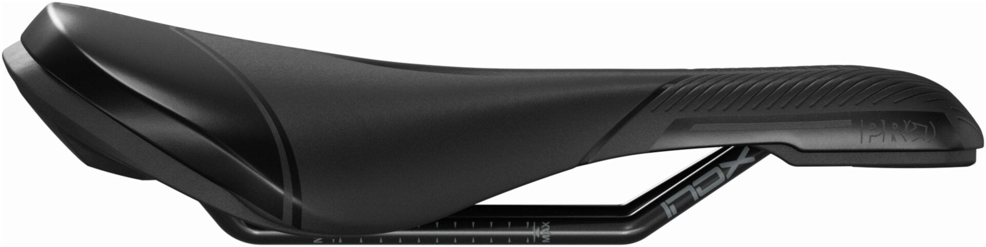 Developed in the Netherlands, utilizing PRO's Dutch engineering design philosophy and manufactured to Japanese industry-leading, exacting standards, the PRO Sirin Performance Saddle is designed to meet the specific needs of women riders. It features a 35-millimeter-wide nose, dual-density EVA foam padding, and a cutout that was developed with a pelvic floor specialist and the feedback of a dedicated product-testing team. It features a side curve, and the durable PU cover wraps ergonomically over the edge of the base to reduce the risk of chafing. It also boasts a women's-specific curve from the nose to the wings of the saddle which, when combined with the dual-density padding, allows women to produce their best possible power by providing a comfortable but locked-in feeling on the saddle. The Performance model has a carbon-reinforced base, INOX stainless steel rails, is available in two widths—152 and 162 millimeters—and, like all PRO Saddles, is compatible with the PRO Saddle Accessory Mount.