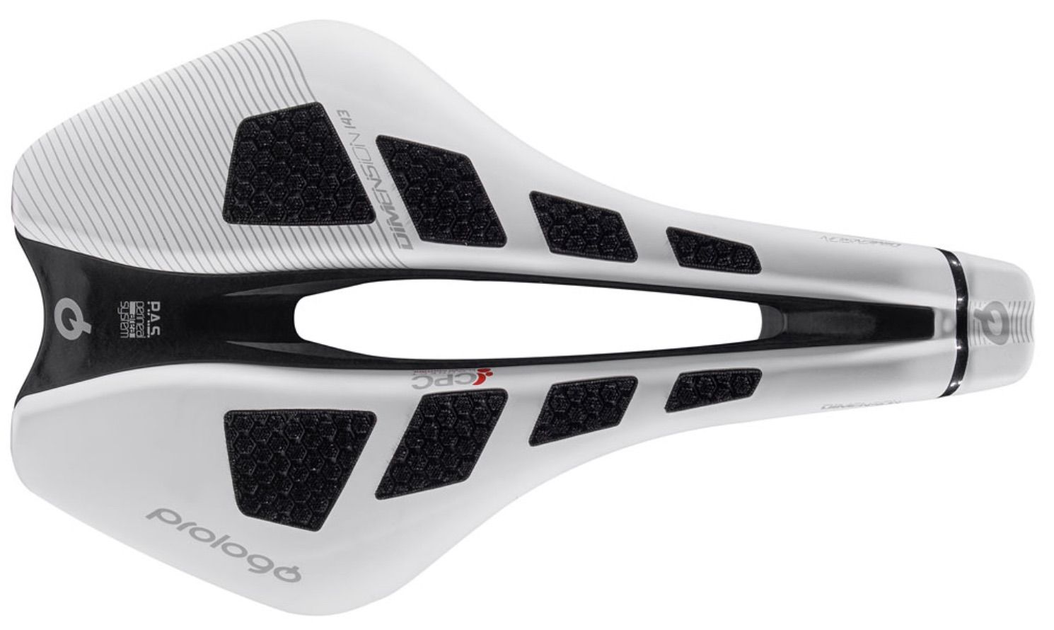 Prologo patented technology. The specially designed CPC surface features a mat of hollow cones of various heights and diameters, arranged for maximum benefits to the rider. These include optimised grip, shock absorption and air cooling. It also enhances blood flow through a massaging action, reducing numbness and tendon related discomfort.