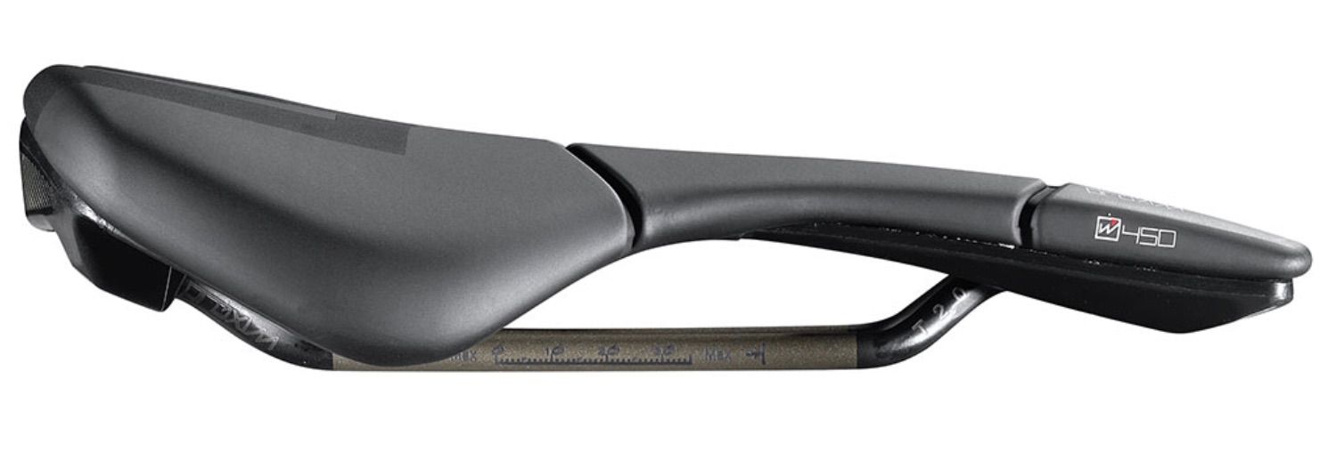 The saddle is shorter at 250mm and wider at 155mm with a semi-round shape which provides comfort no matter what it's being used for and is ideal for long distance riding. Along the edges of the saddle, the Proxim W450 is more flexible allowing greater freedom of movement.