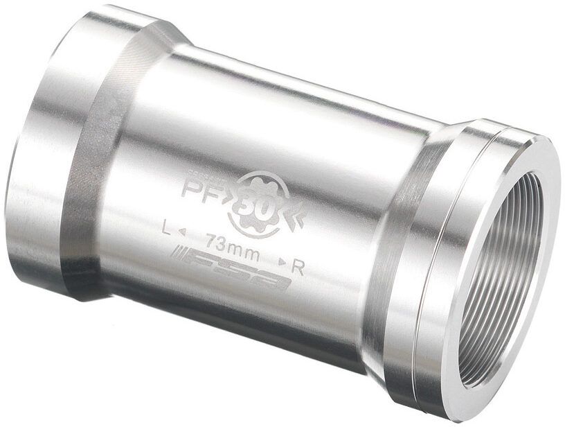 Presses into a PF30 bottom bracket shell with 46mm inner diameter (ID) and 68 / 73mm width to allow a threaded bottom bracket to be installed.