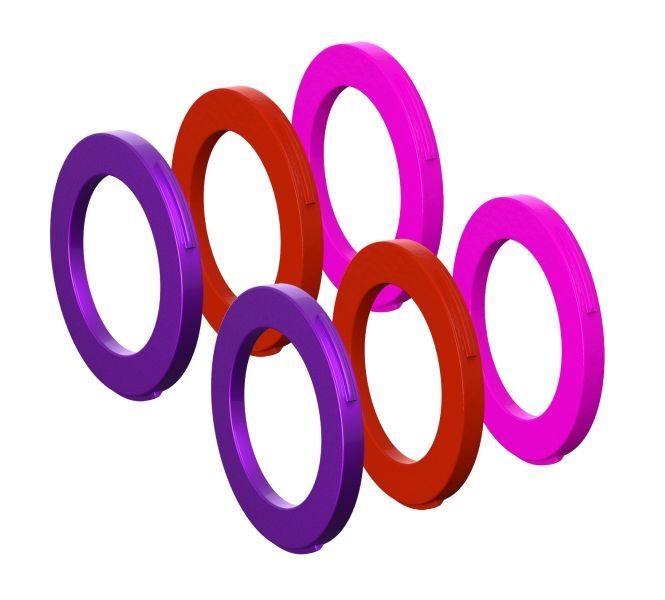 Replacement caliper covers for Magura hydraulic brakes. Suitable for brakes from manufacturer year 2015. Set includes 2x pink, 2x red, 2x purple covers.