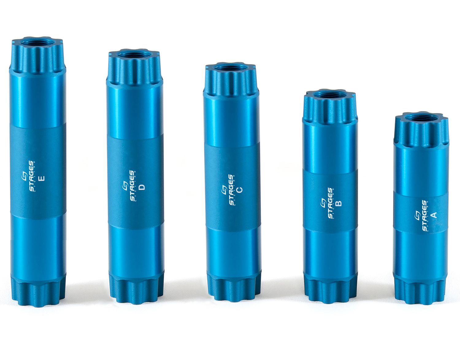 The spindles are manufactured for Stages Cycling by Full Speed Ahead, forged and machined out of aluminum to allow for the carbon Stages Power meter to be used with SRAM BB30 road and SRAM BB30 and SRAM DUB mountain bike (168mm Q-factor) drive side cranks as well as Easton EC90 SL. Specialized and Race Face Next SL cranks. The Stages Power Bottom Bracket spindles are specifically designed to meet or exceed the performance of the manufacturer’s stock component, while allowing the retrofit of the new Stages Power Carbon to a rider’s SRAM, Easton, Specialized or Race Face drivetrain.